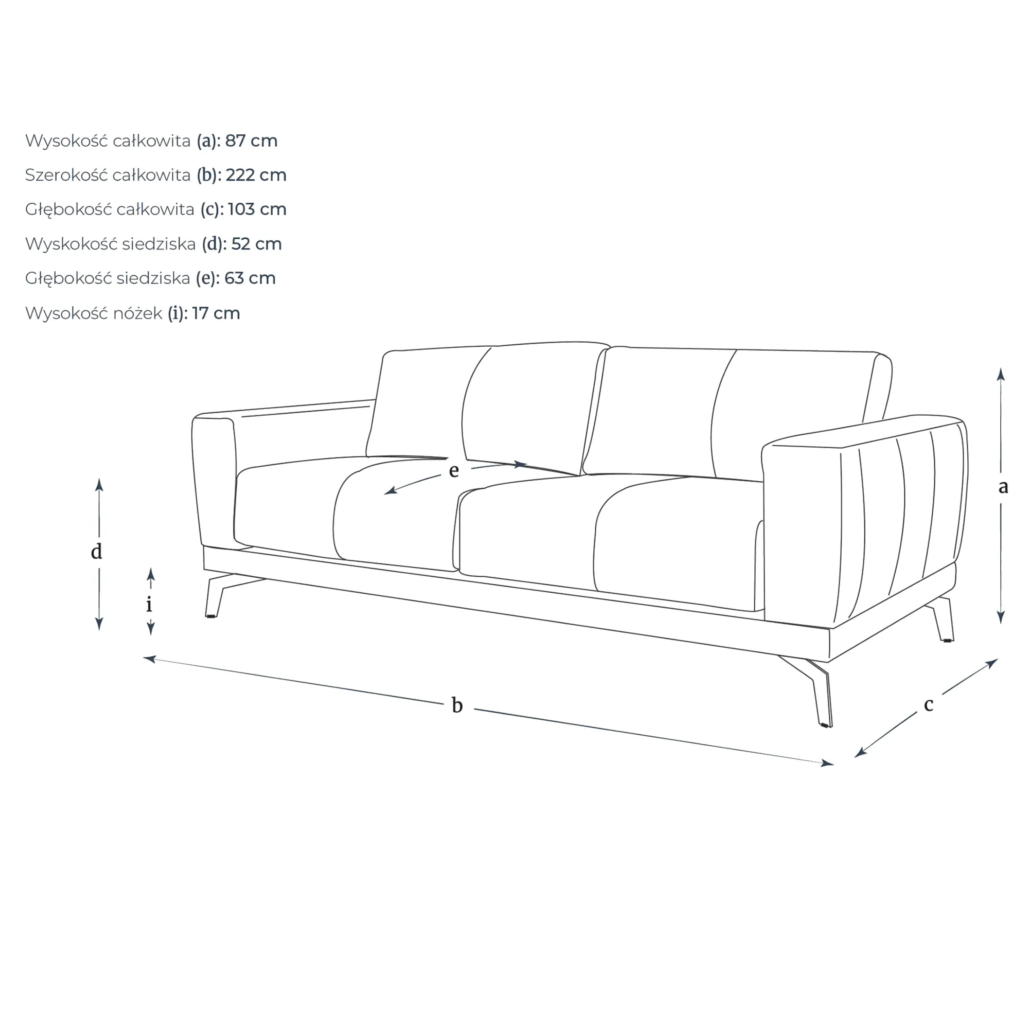 3,5 Osobowa Sofa Holm 222x103x87cm - Opcje Wyboru Tkaniny