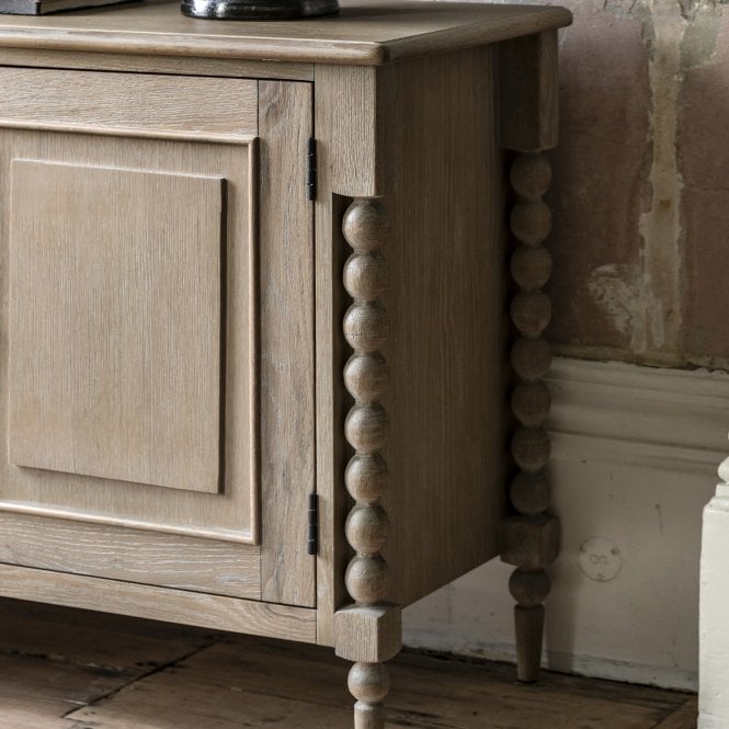 Klasyczny design komody Tunnise emanuje elegancją i ponadczasowym stylem. Wykonana z litego dębu i forniru, gwarantuje nie tylko trwałość, ale także wysoką jakość wykonania. Ręcznie wykonane detale, takie jak precyzyjnie toczone nogi, nadają komodzie niepowtarzalnego charakteru i wyrafinowanego wyglądu.
