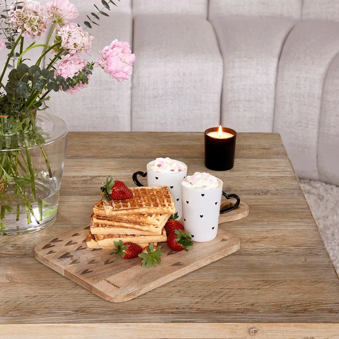 Wykonana z cudownie gładkiego drewna mango z wypalanym wzorem małych serduszek.