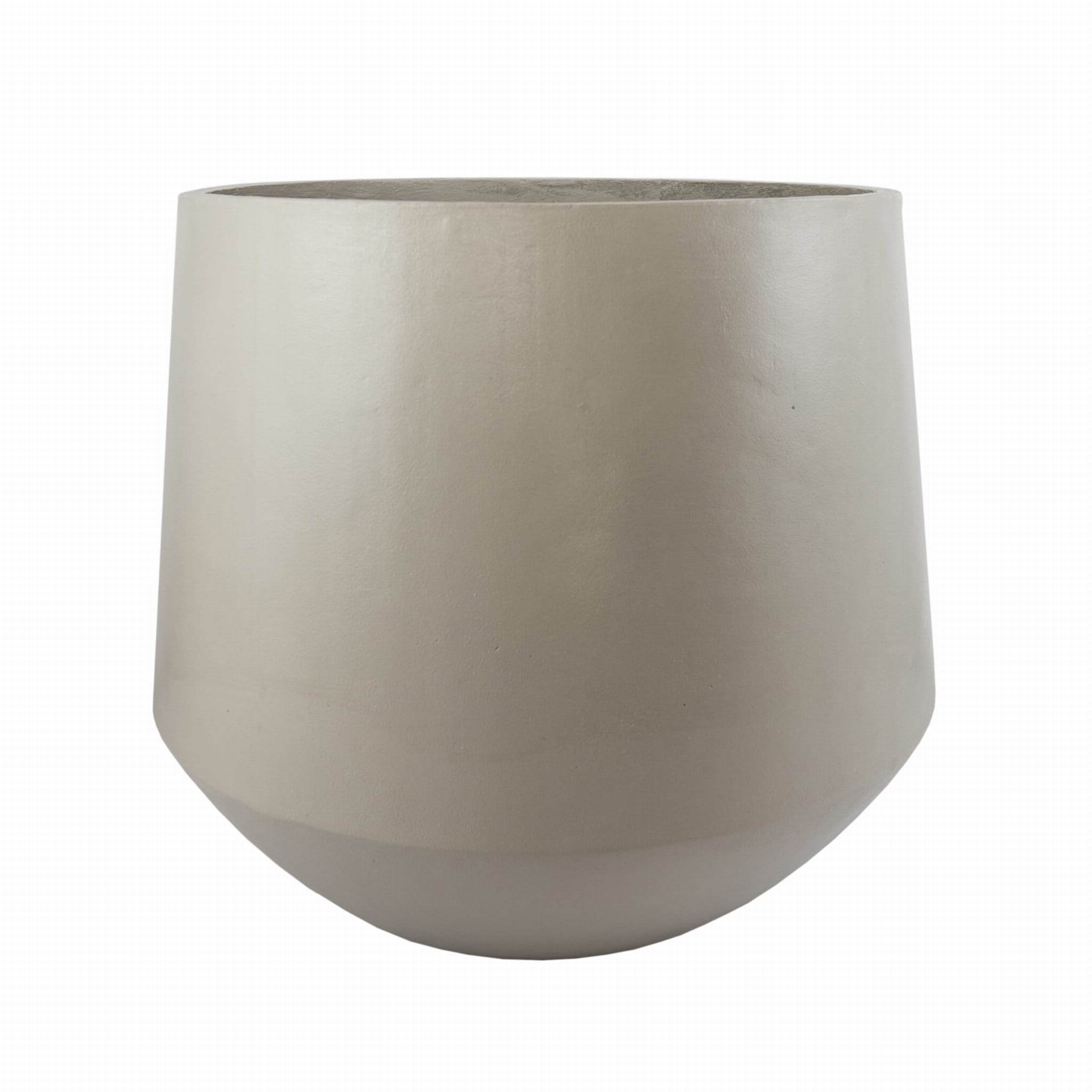 Donica wyróżnia się gładką, jednolitą powierzchnią o satynowym wykończeniu, co nadaje jej nowoczesny, niemal architektoniczny charakter. Kremowy kolor doskonale współgra z szeroką gamą barw i faktur – od ciepłego drewna, przez metal, aż po surowy beton. Zwężająca się ku dołowi bryła zapewnia stabilność, a jednocześnie nadaje donicy lekkości i elegancji.