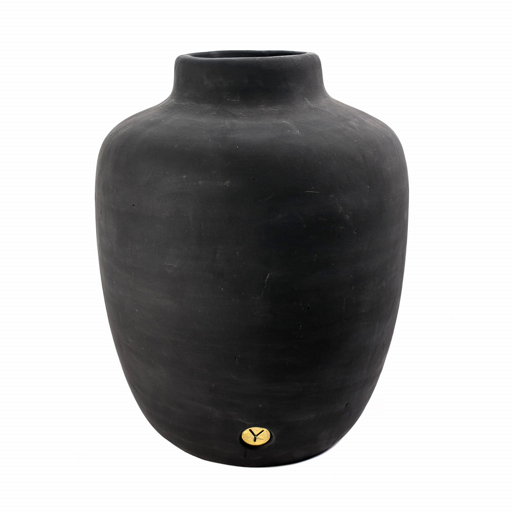 Wazon Brynx został wykonany z wysokiej jakości ceramiki, co nadaje mu trwałości i solidności. Jego matowe, czarne wykończenie emanuje elegancją i wprowadza do wnętrza nowoczesny, ale zarazem ponadczasowy charakter. Prosta forma, subtelnie zaokrąglona, sprawia, że wazon idealnie wpisuje się w najnowsze trendy wnętrzarskie. Złoty akcent w dolnej części podkreśla unikatowość i dodaje mu luksusowego wyglądu.