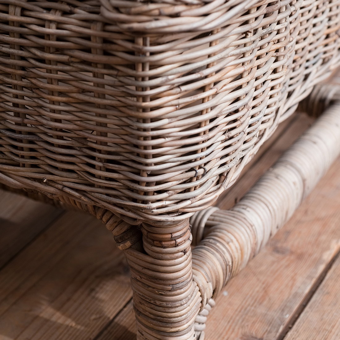 Model Nicolas Kid Riviera Maison wyróżnia się ręcznie plecioną konstrukcją z naturalnego rattanu, która nadaje całości szlachetny, lekko rustykalny wygląd. Wysokie oparcie, subtelnie wyprofilowane boki oraz zaokrąglone podłokietniki budują przyjazną, otulającą formę idealną dla dziecka. Jasna poduszka siedziska zwiększa wygodę i pięknie kontrastuje z ciepłym odcieniem rattanu. Dzięki temu Riviera Maison oferuje mebel, który łączy trwałość, estetykę i dziecięcą lekkość.