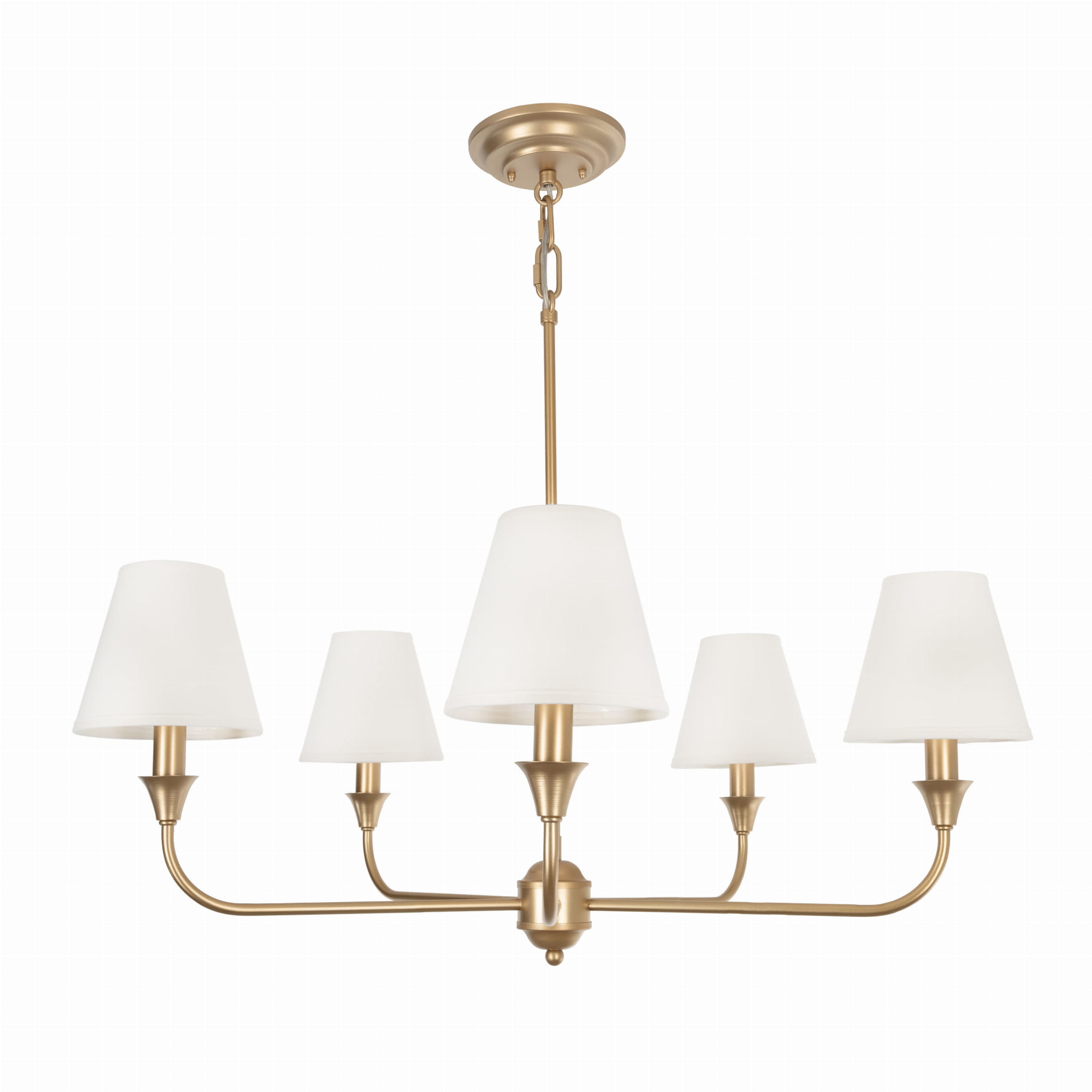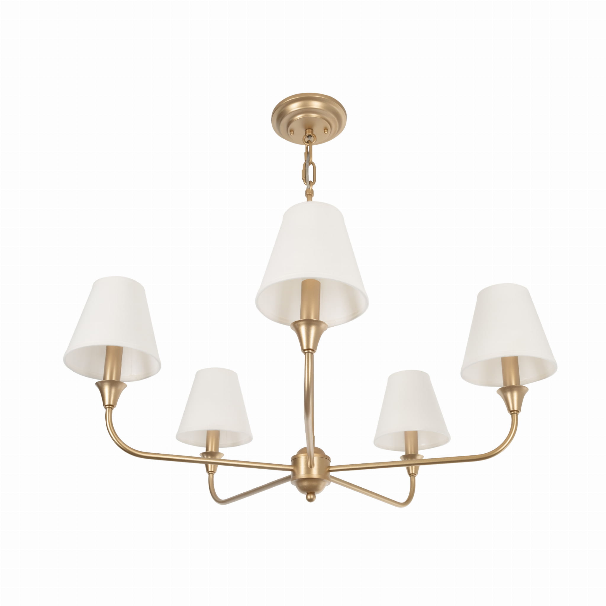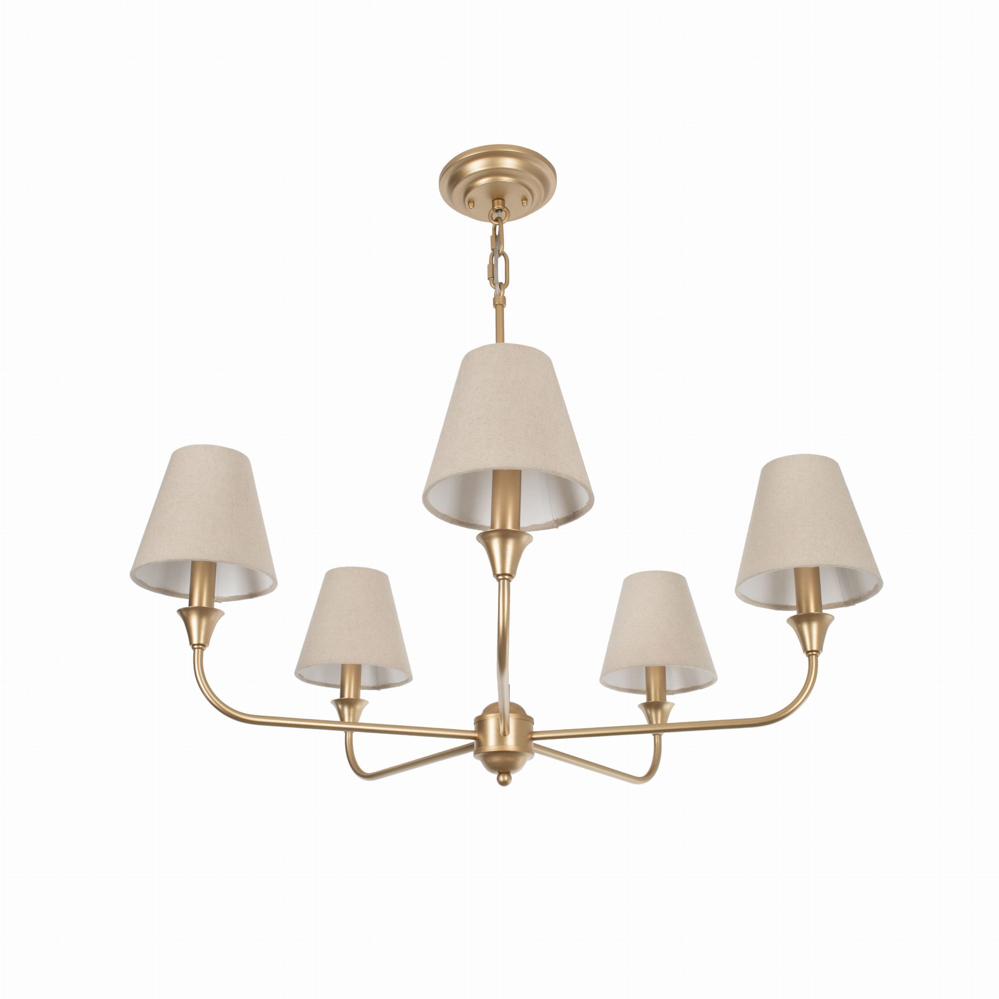 Stylowy żyrandol CHEEL to połączenie wyrafinowanego designu z najwyższą jakością wykonania. Ta wyjątkowa lampa, wykonana w całości z metalu, zachwyca swoim ręcznym wykonaniem oraz malowaniem na kolor złoty, co nadaje jej ekskluzywny wygląd. Możesz wybrac wersję z abazurem nakładanym na żarókę w kolorze białym lub beżowym lub wersję bez abażura.