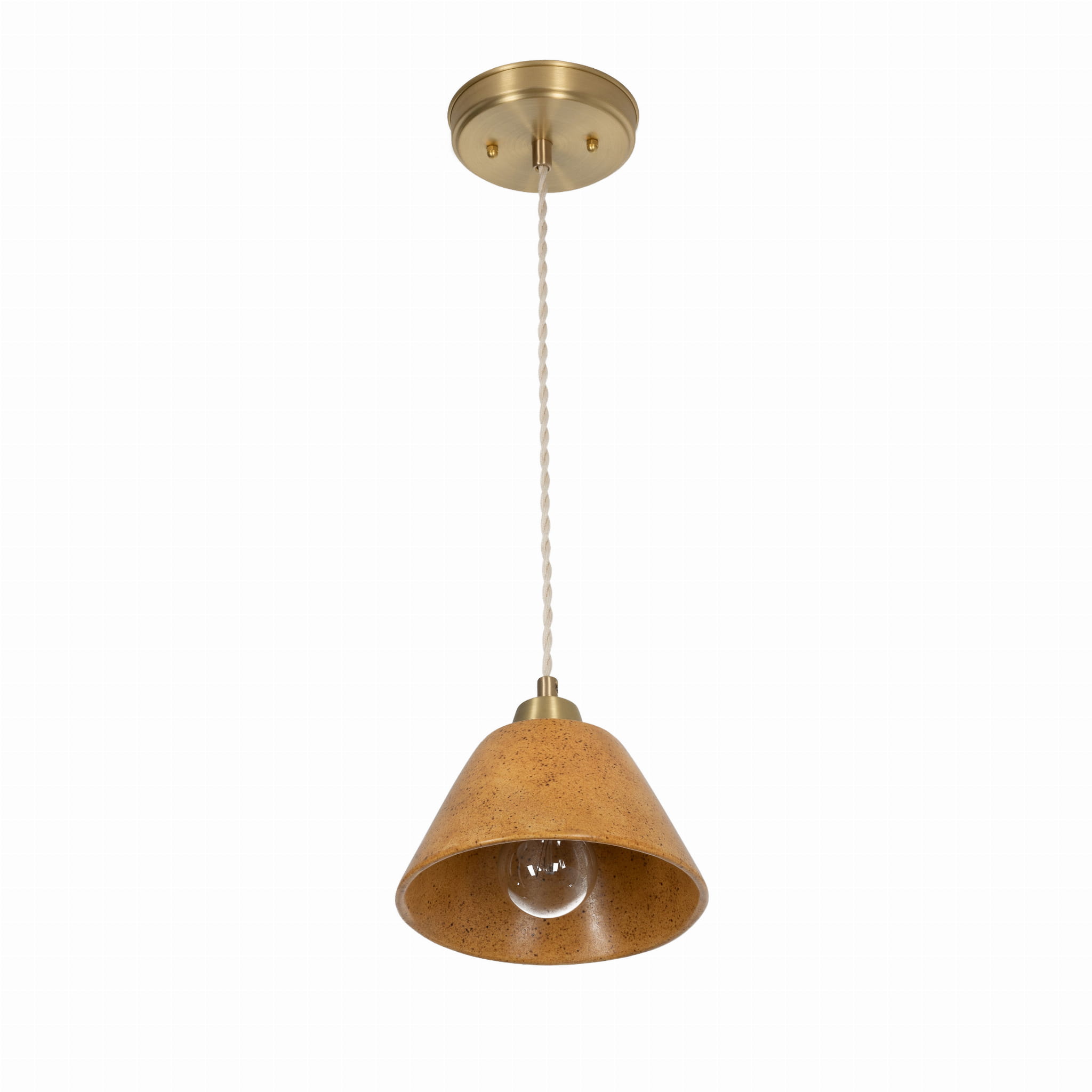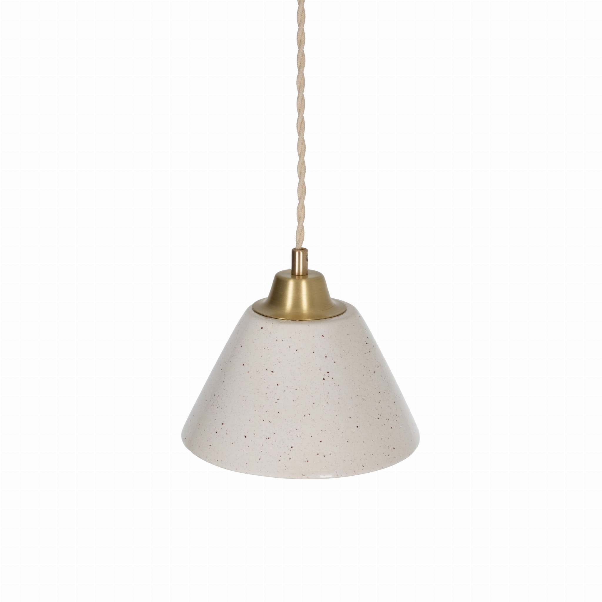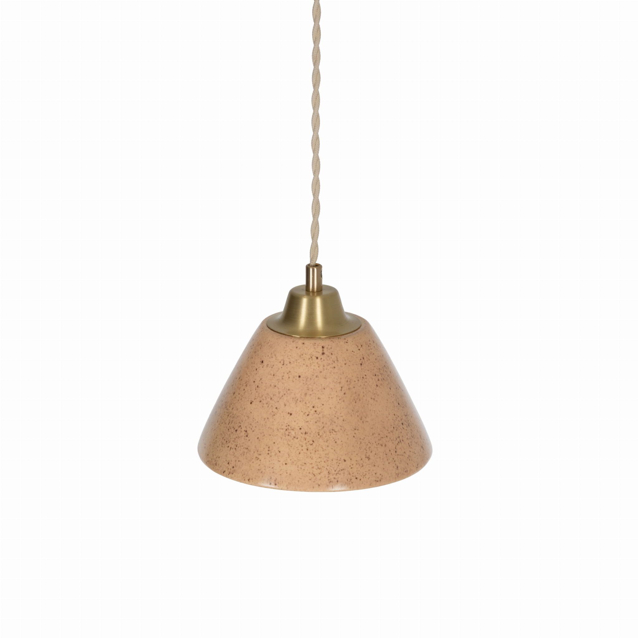 Wyjątkowość Eleganckiej Lampy Sufitowej Nila S wynika z połączenia rzemiosła z ponadczasowym wzornictwem. Ręcznie formowany klosz ceramiczny zachwyca delikatnie ziarnistą powierzchnią, która miękko rozprasza światło i tworzy przyjemny efekt wizualny. Całość dopełnia szczotkowany mosiądz oraz dekoracyjny przewód w oplocie, dzięki którym lampa prezentuje się elegancko, naturalnie i bardzo stylowo.