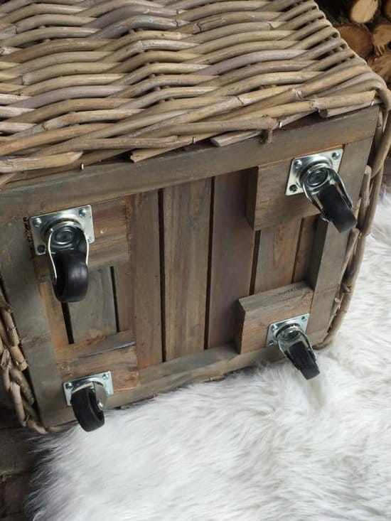 Kosz wyposażony został w cztery obrotowe kółka, które zapewniają mobilność i łatwe przesuwanie nawet przy większym obciążeniu. Dzięki nim możesz bez wysiłku przemieszczać kosz po całym pomieszczeniu. Wnętrze o wymiarach 35x35x40 cm zapewnia dużo miejsca na przechowywanie drewna, tekstyliów czy innych domowych drobiazgów. To idealne rozwiązanie, jeśli cenisz sobie praktyczność połączoną z estetyką.