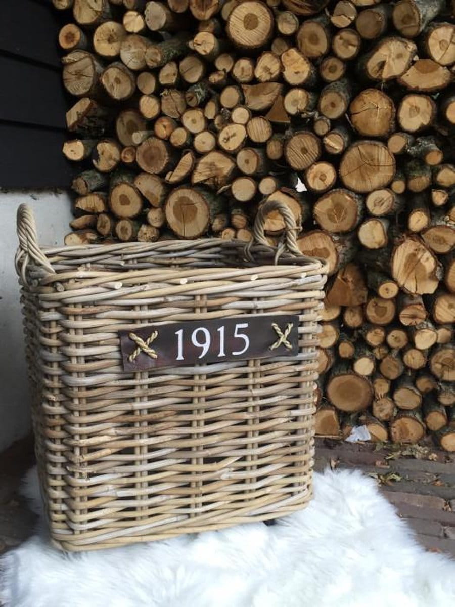 Kosz został wykonany z naturalnego rattanu, co nadaje mu niepowtarzalny, rustykalny charakter. Jego jasnoszara, postarzona kolorystyka doskonale wpisuje się w modny styl vintage i skandynawski. Front ozdobiono ciemnym drewnianym panelem z białym napisem 1915, który podkreśla klasyczny design. Całość uzupełniają solidne uchwyty, ułatwiające przenoszenie. Model należy do serii dekoracyjnych koszy inspirowanych dawnym rzemiosłem i naturalnymi materiałami.