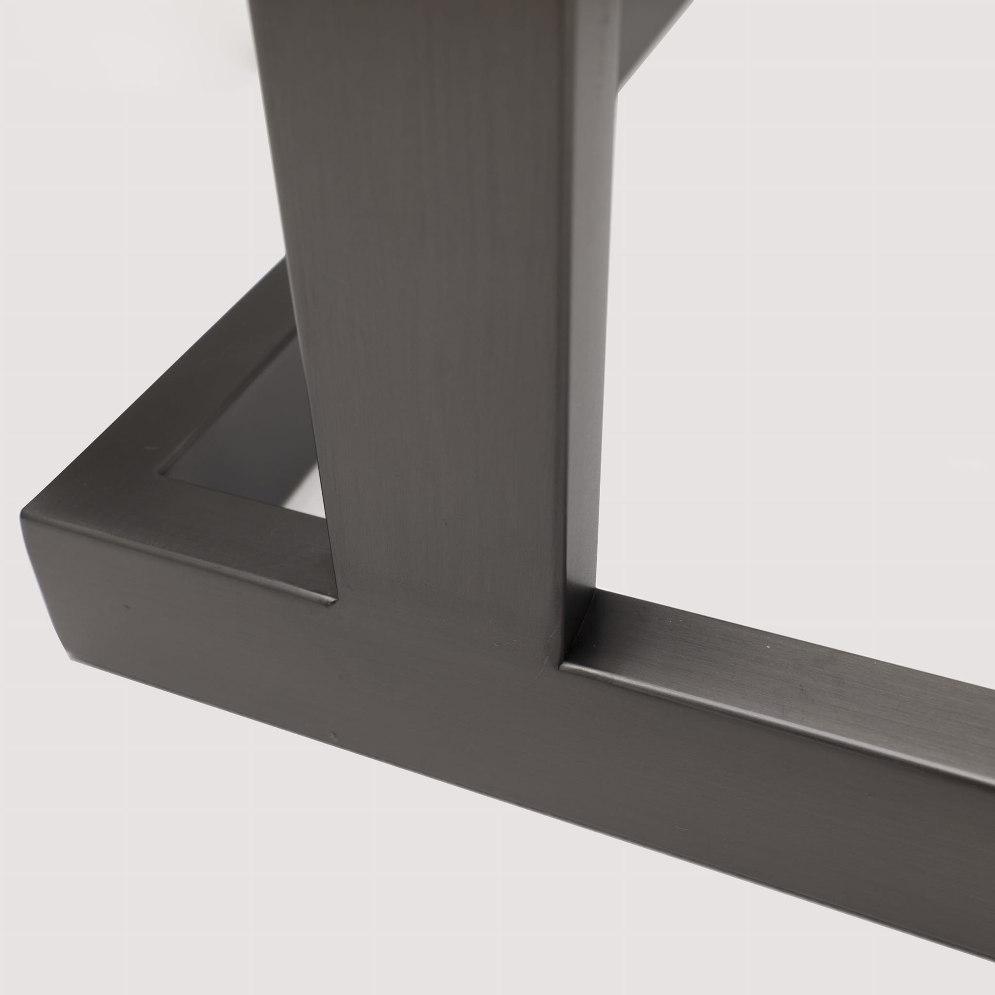 Nowojorski stolik Nottura został wykonany z najwyższej jakości materiałów. Konstrukcja ze szczotkowanej stali nierdzewnej oraz przezroczyste szkło hartowane gwarantują trwałość i elegancki wygląd. Dodatkowo, różnorodne wykończenia – niklowana stal nierdzewna, polerowane złoto, szczotkowany mosiądz i szczotkowana czerń – pozwalają dopasować stolik do kolorystyki dominującej we wnętrzu, nadając mu indywidualnego charakteru.