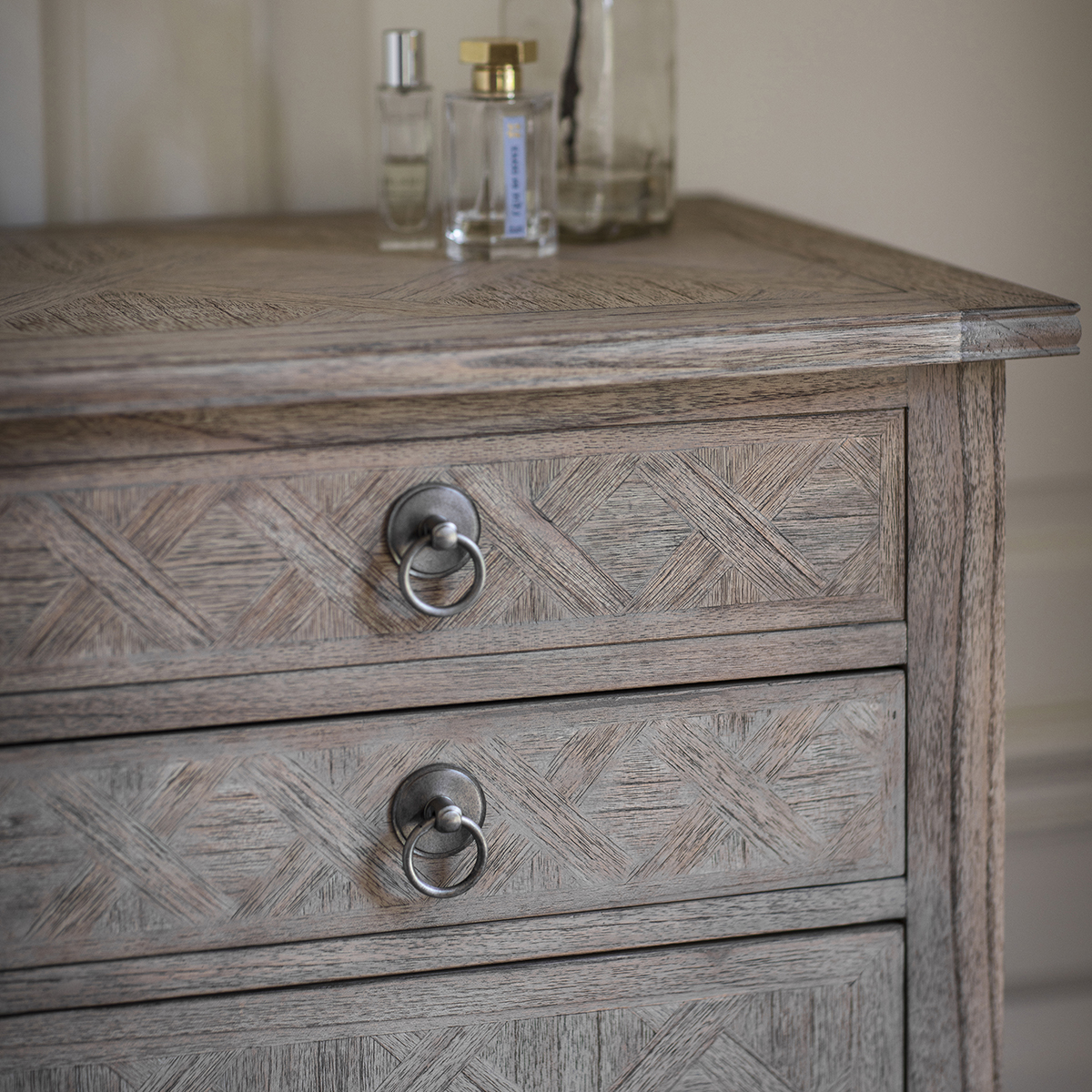 Komoda Mustique doskonale odnajdzie się w Twojej sypialni jako elegancka szafka na bieliznę lub w salonie jako stylowy akcent. Jej klasyczny i kolonialny styl sprawia, że idealnie pasuje do wnętrz pełnych charakteru. Jest to wszechstronny mebel, który wzbogaci każdą aranżację.