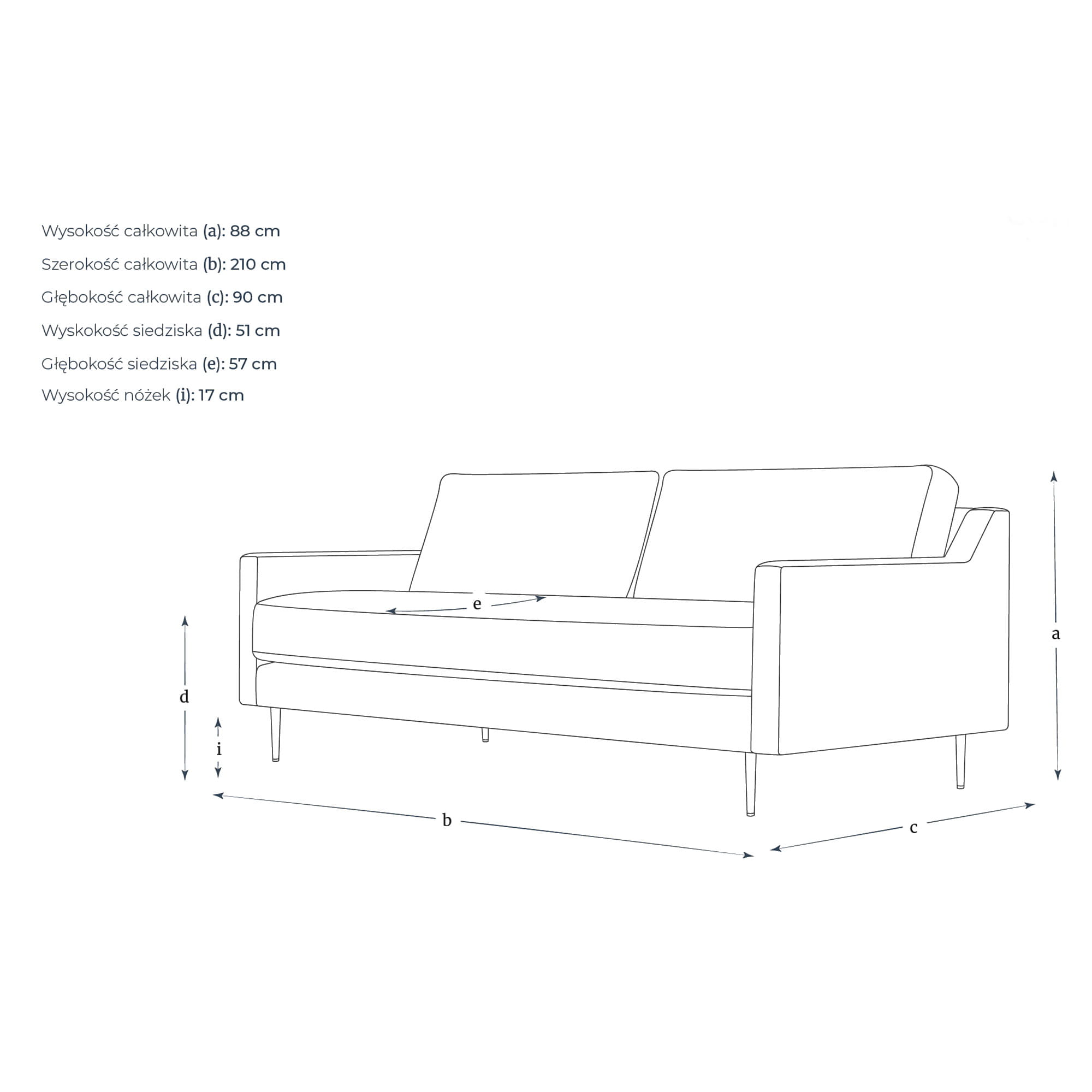 Klasyczna Trzyosobowa Sofa Elixir 210x90x88cm - Opcje Wyboru Tkaniny