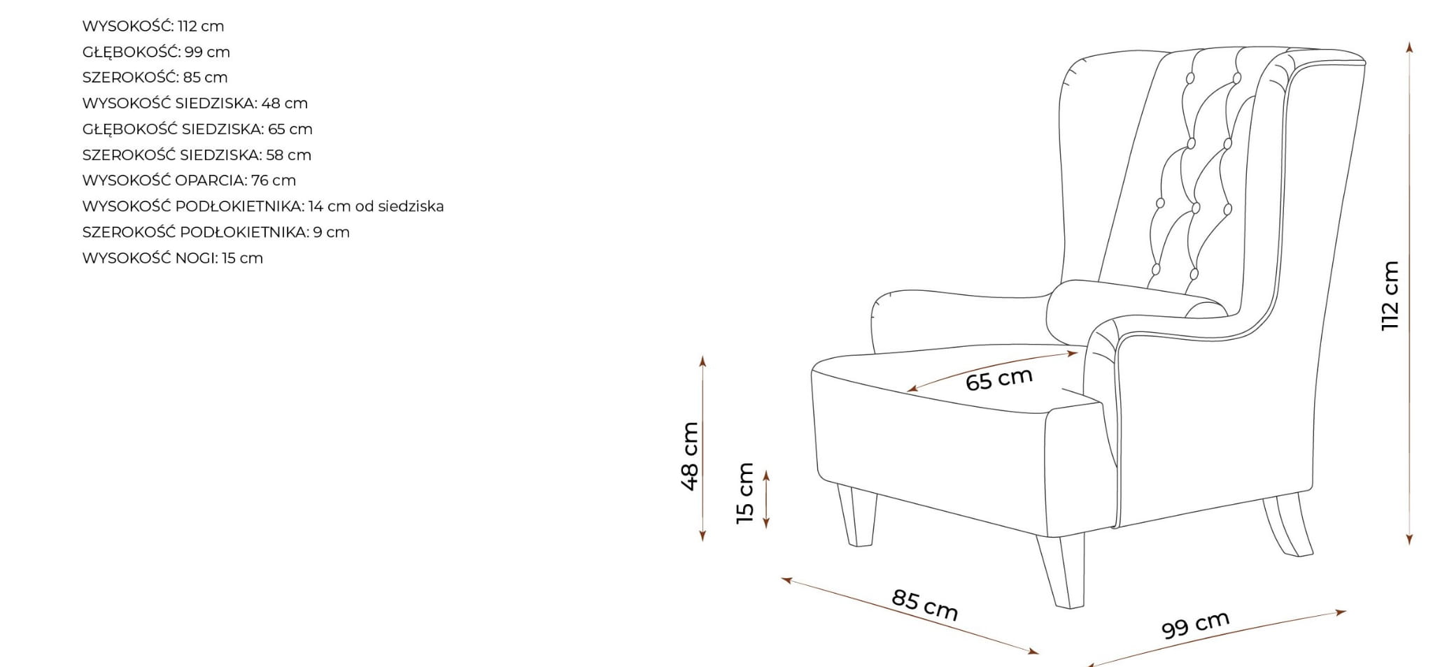 | Ważne / Uwagi | Podane wymiary mebli tapicerowanych to wymiary orientacyjne, które mogą nieznacznie różnić się od rzeczywistych (tolerancja wymiaru: +/- do 3 cm). Różnice mogą wynikać z zastosowania różnych materiałów obiciowych. |