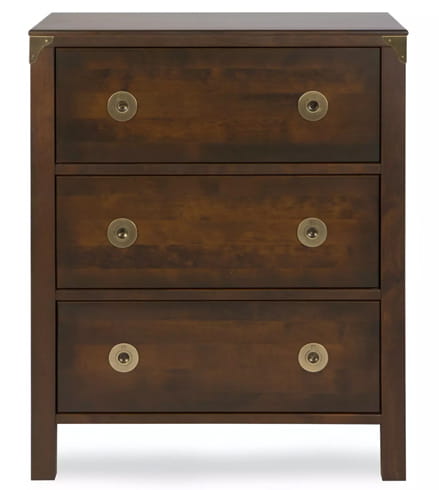 Komoda w odcieniu kasztanowym, o wymiarach 70x45x84,5cm, idealnie wpisze się w aranżację wnętrza w stylu kolonialnym czy modern classic. Komoda posiada trzy pojemne szuflady.
