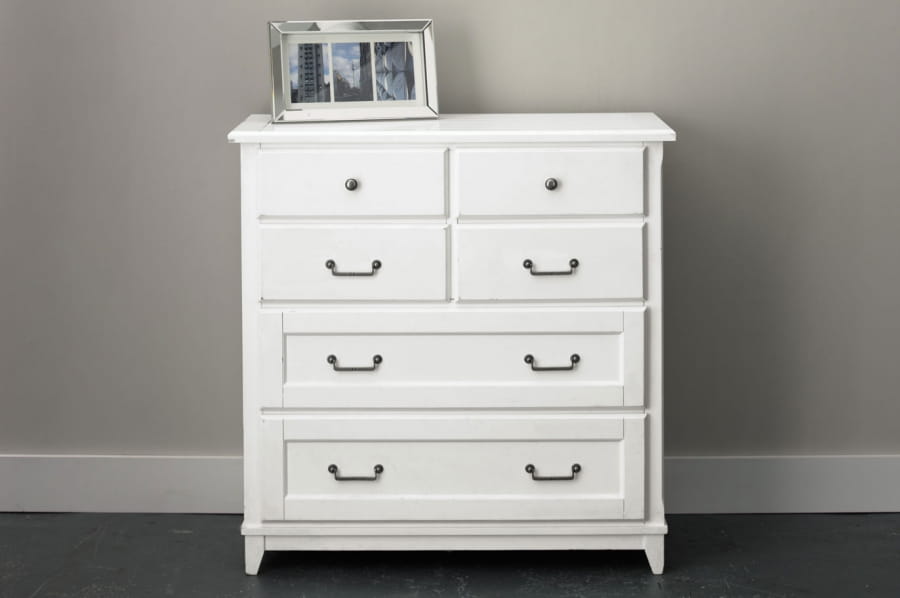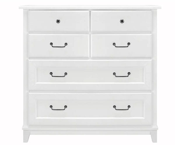 Komoda w kolorze białym, wymiary 104x45x105cm, doskonale wpisze się w wystrój sypialni, salonu. Posiada sześć szuflad.