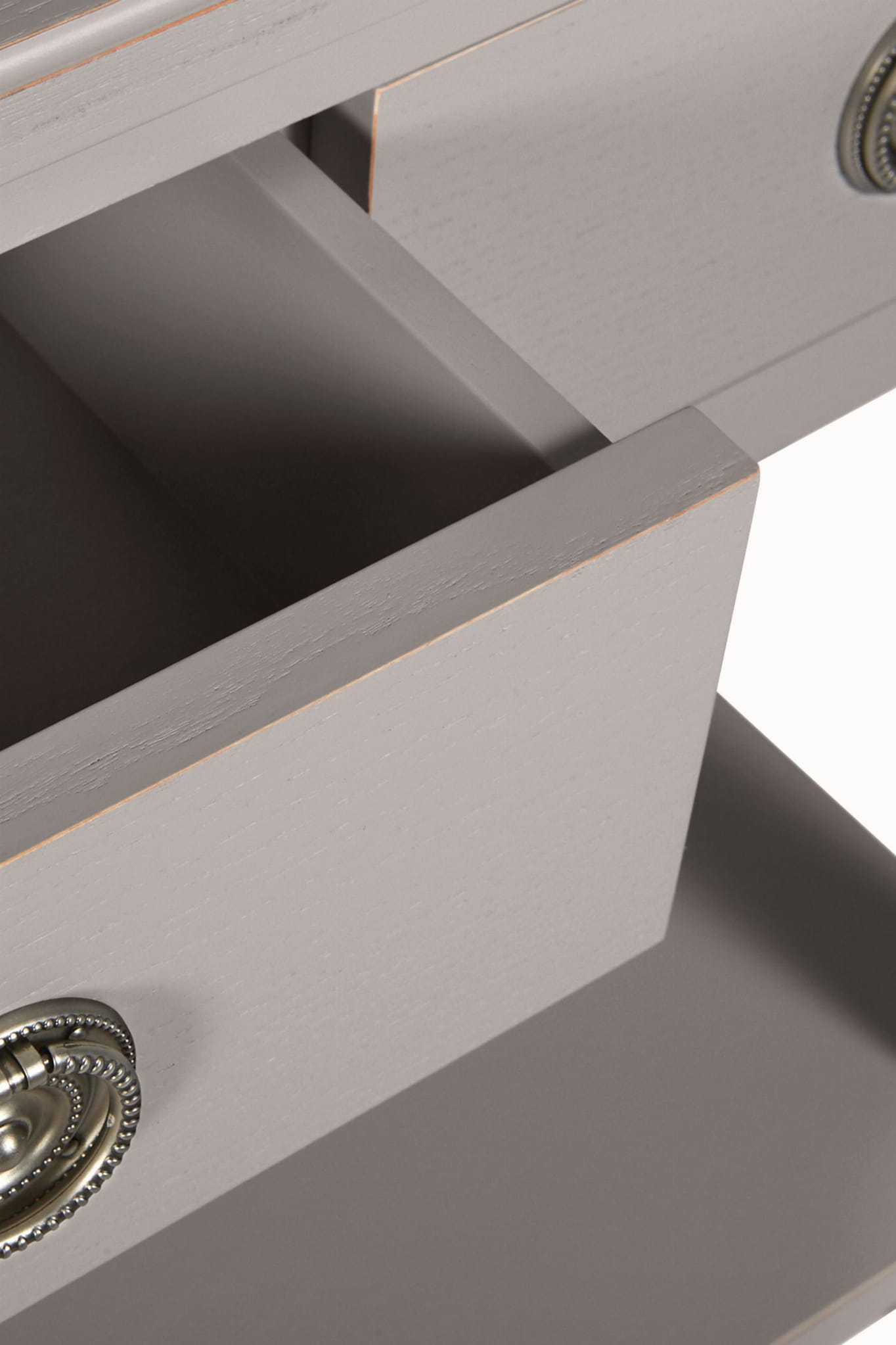 Stylowa konsola z przestronną szufladą w szrym kolorze doskonale komponuje się zarówno w nowoczesnych, jak i klasycznych wnętrzach. Jej ponadczasowy design i subtelne, przecierane wykończenie dodają wnętrzu stylu, elegancji i klasy. Dzięki swojej wszechstronności, konsola Henshaw Laura Ashley z szufladami może być używana w różnych pomieszczeniach, pełniąc funkcję praktycznego i dekoracyjnego elementu wystroju.