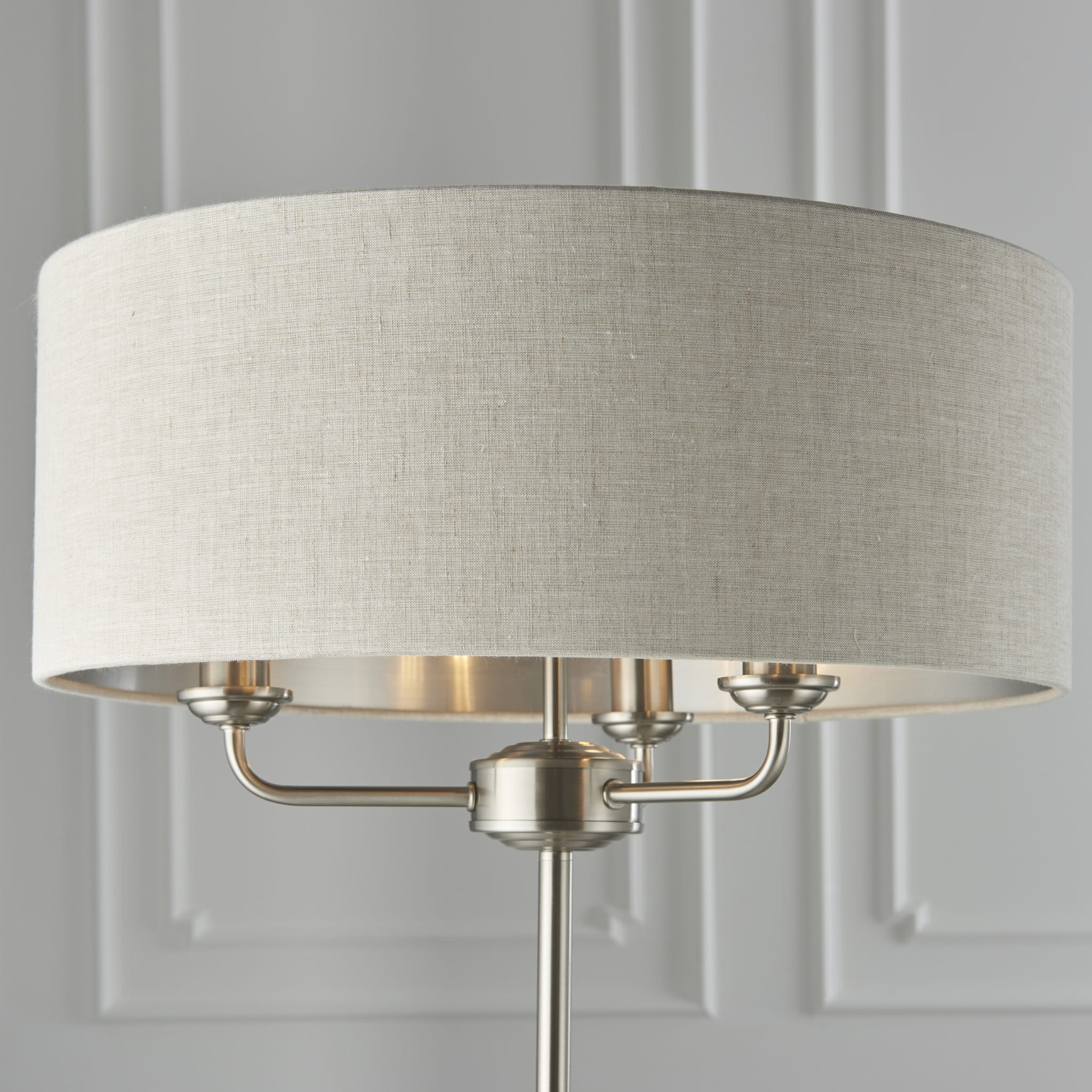 Lampa Podłogowa Highclere, stworzona z połączenia stali pokrytej chromem i tkaniny w naturalnym odcieniu, wyróżnia się ponadczasową elegancją. Charakteryzuje się sophisticated designem, który bezproblemowo komponuje się zarówno z nowoczesnym, jak i klasycznym wystrojem wnętrz. Tkanina z naturalnego lnu jest nie tylko estetycznie atrakcyjna, ale również gwarantuje przytulne, miękkie oświetlenie.Dodatkowym atutem lampy jest zastosowanie w niej przycisku do włączania i wyłączania, umieszczonego bezpośrednio na kablu. Ta niewielka, ale praktyczna funkcja sprawia, że lampa jest niezwykle wygodna w użytkowaniu.