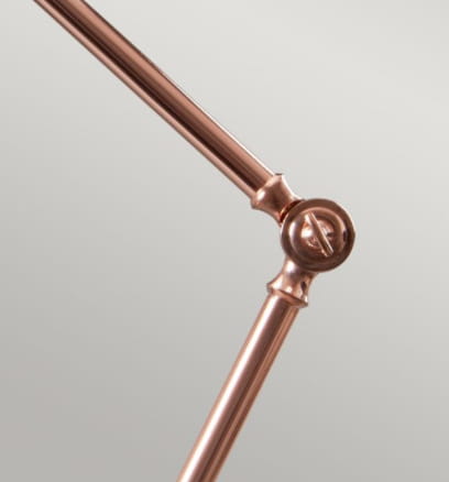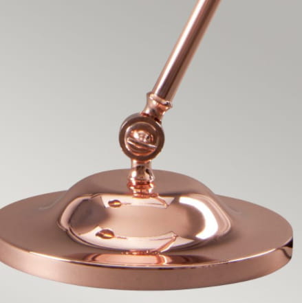 Lampa stołowa, w kolorze polerowanej miedzi stanowi praktyczne, a zarazem eleganckie oświetlenie. Doskonale sprawdzi się w przestrzeni mieszkalnej i biurowej nawiązującej do klasycznego artdeco, czy modern classic.