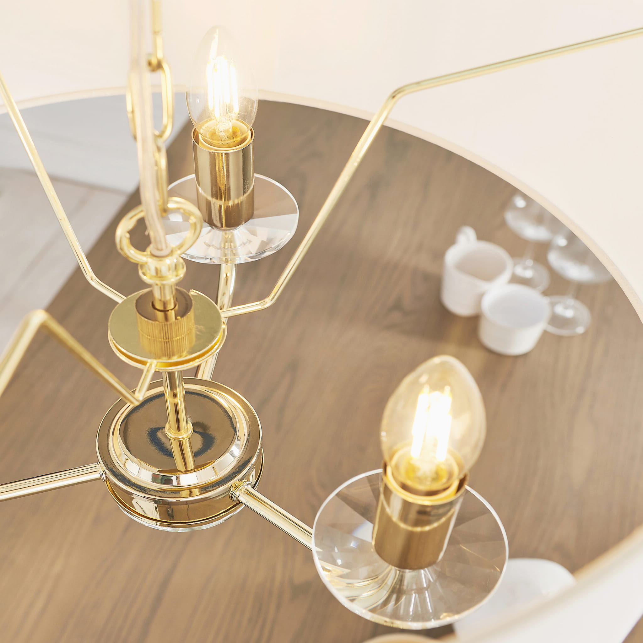 - Elegancki design z mosiężnymi akcentami i kloszem w kolorze białym vintage