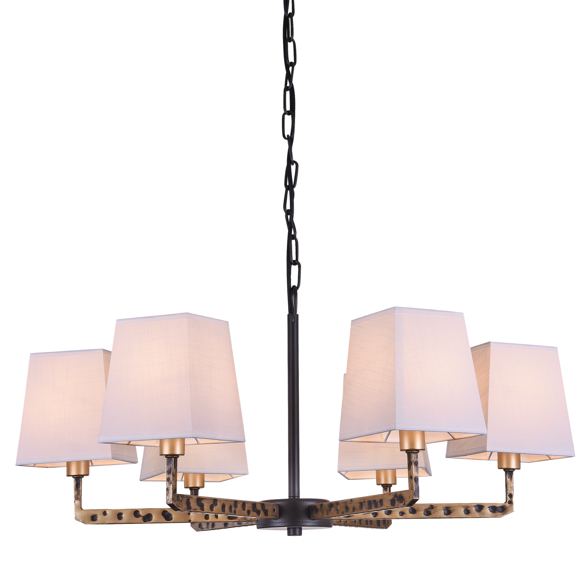 Czarno-złote, wykończenie to znak rozpoznawczy serii Lume. Ten model posiada sześć ramion oraz sześć kwadratowych abażurków.