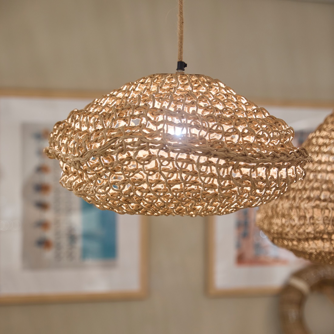 Naturalna estetyka sprawia, że lampa wisząca doskonale odnajduje się w aranżacjach boho, japandi, skandynawskich oraz rustykalnych. W Twoim salonie podkreśli przytulny klimat, w jadalni stworzy efektowne oświetlenie nad stołem, a w sypialni wprowadzi spokojny nastrój. Świetnie komponuje się z drewnem, lnem oraz plecionymi dodatkami.