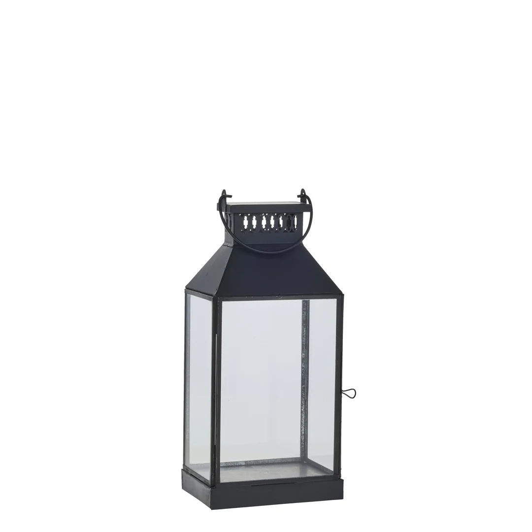 Model Signe o wysokości 30,5 cm wykonany został z żelaza malowanego na czarno oraz przezroczystego szkła, które pięknie eksponuje umieszczoną wewnątrz świecę. Produkowana ręcznie przez doświadczonych rzemieślników, posiada celowo niedoskonałe spawy i łączenia, które podkreślają rustykalny charakter i unikatowość każdej sztuki. Górna część ozdobiona została dekoracyjnymi wycięciami oraz funkcjonalnym uchwytem.