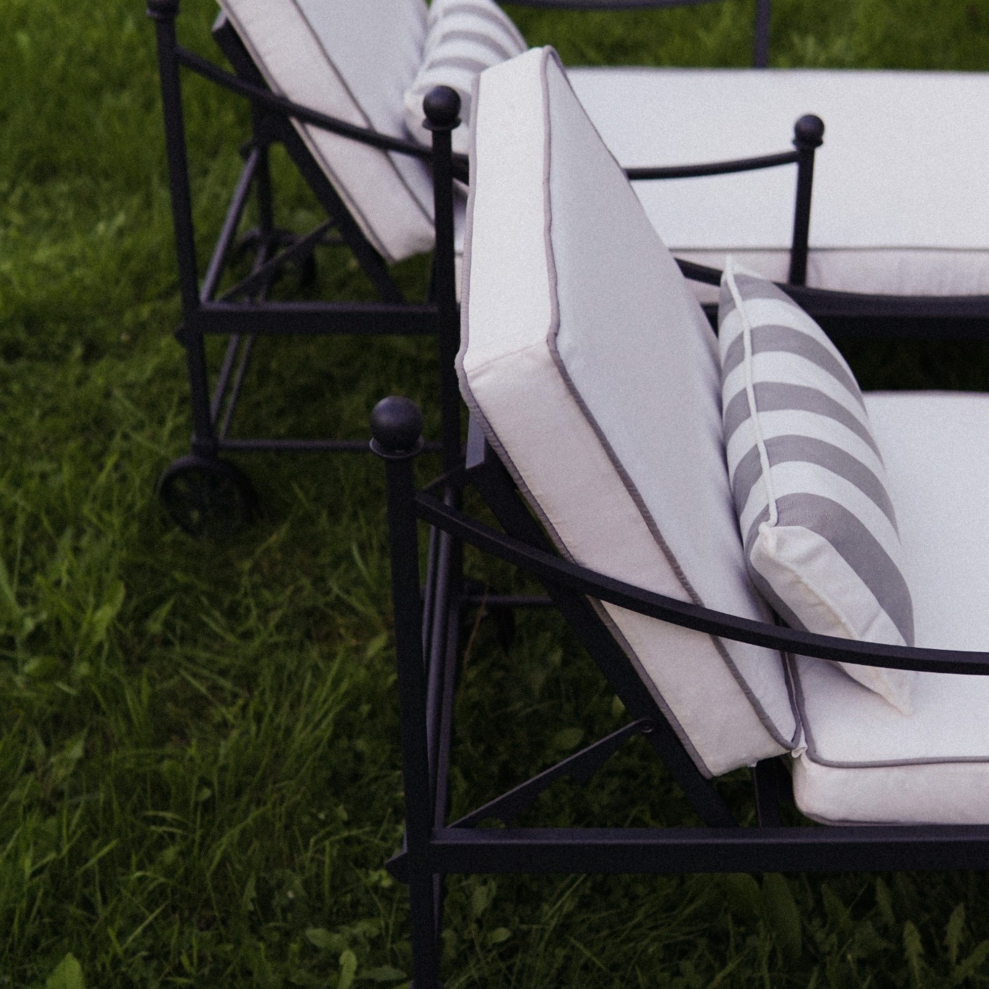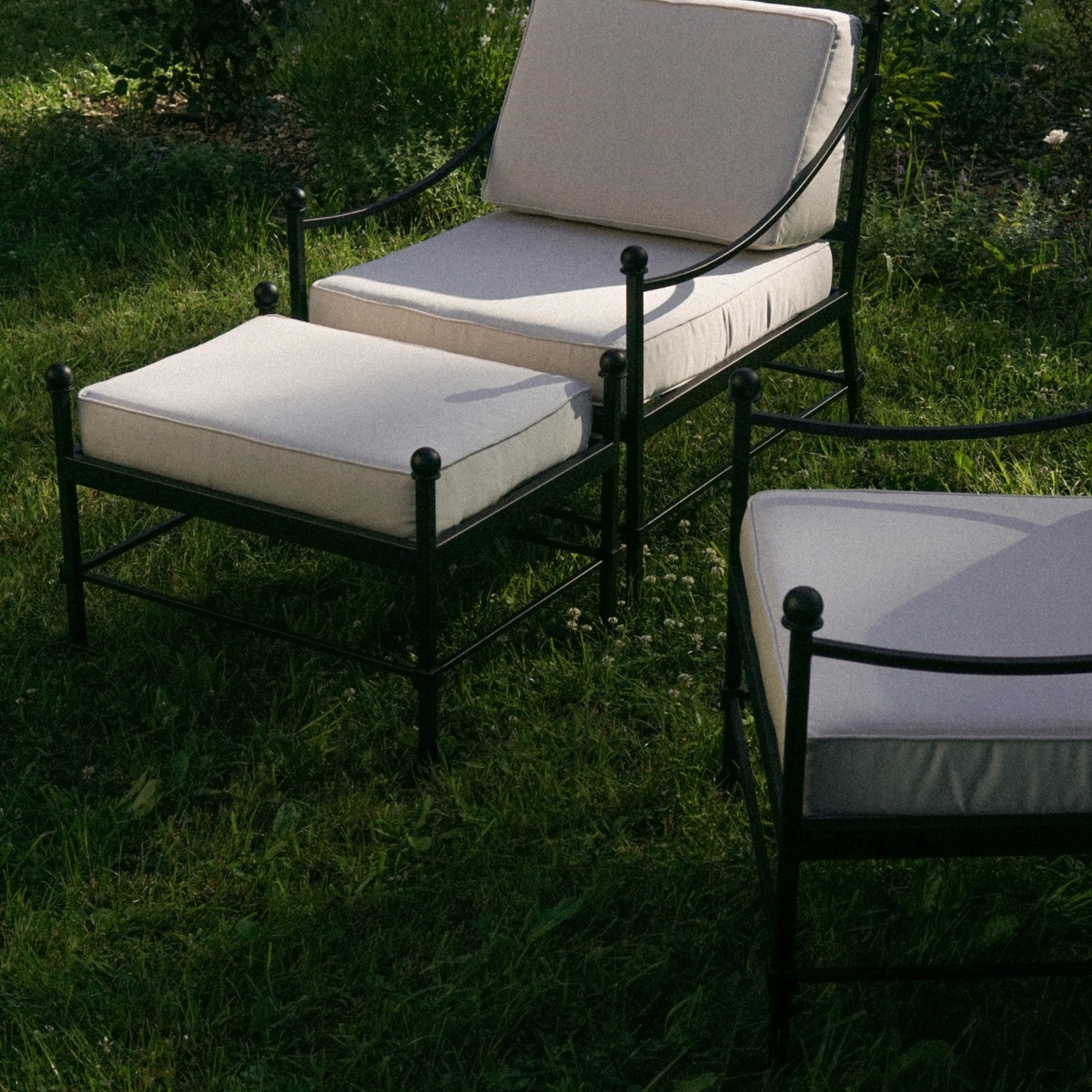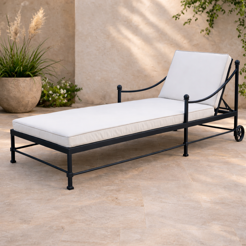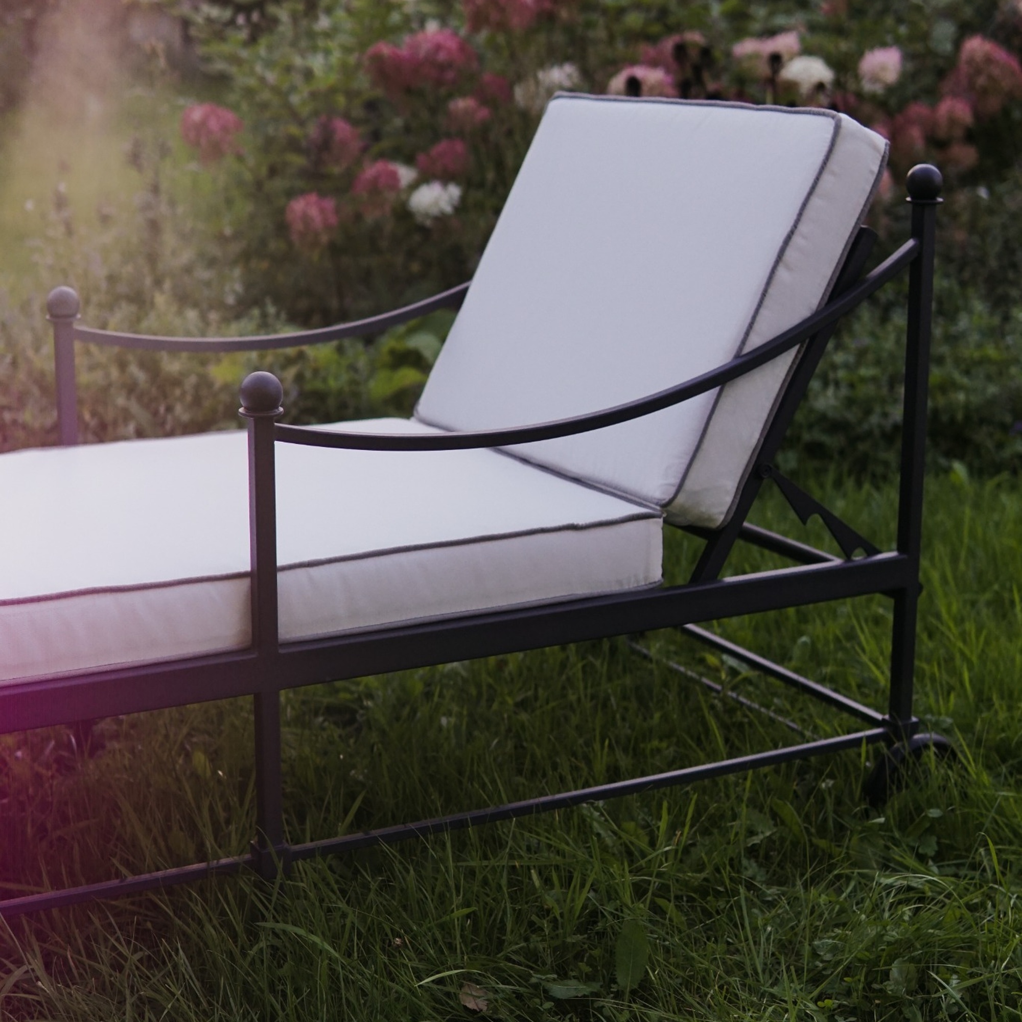 Leżak z kolekcji BONJOUR L'ÉTÉ wyróżnia się konstrukcją opartą na ręcznie kształtowanej stali, która zachowuje unikalny ślad pracy rzemieślnika. Subtelnie poprowadzone linie boczne, łukowe podłokietniki oraz dekoracyjne, kuliste zwieńczenia nadają całości elegancki charakter. Inspiracje śródziemnomorską architekturą wprowadzają do Twojego ogrodu wyjątkową lekkość, jednocześnie podkreślając solidność i trwałość formy.
