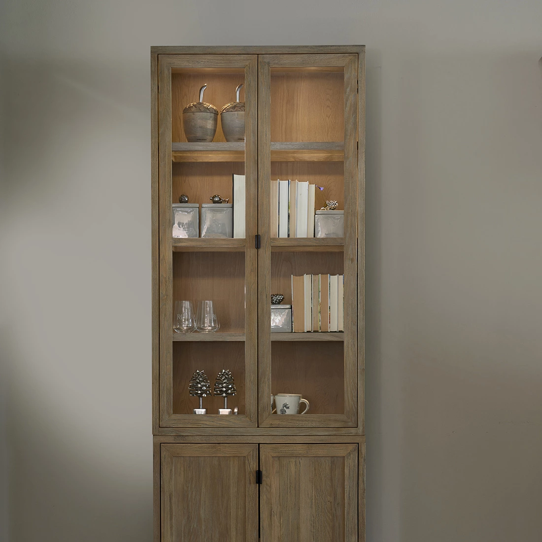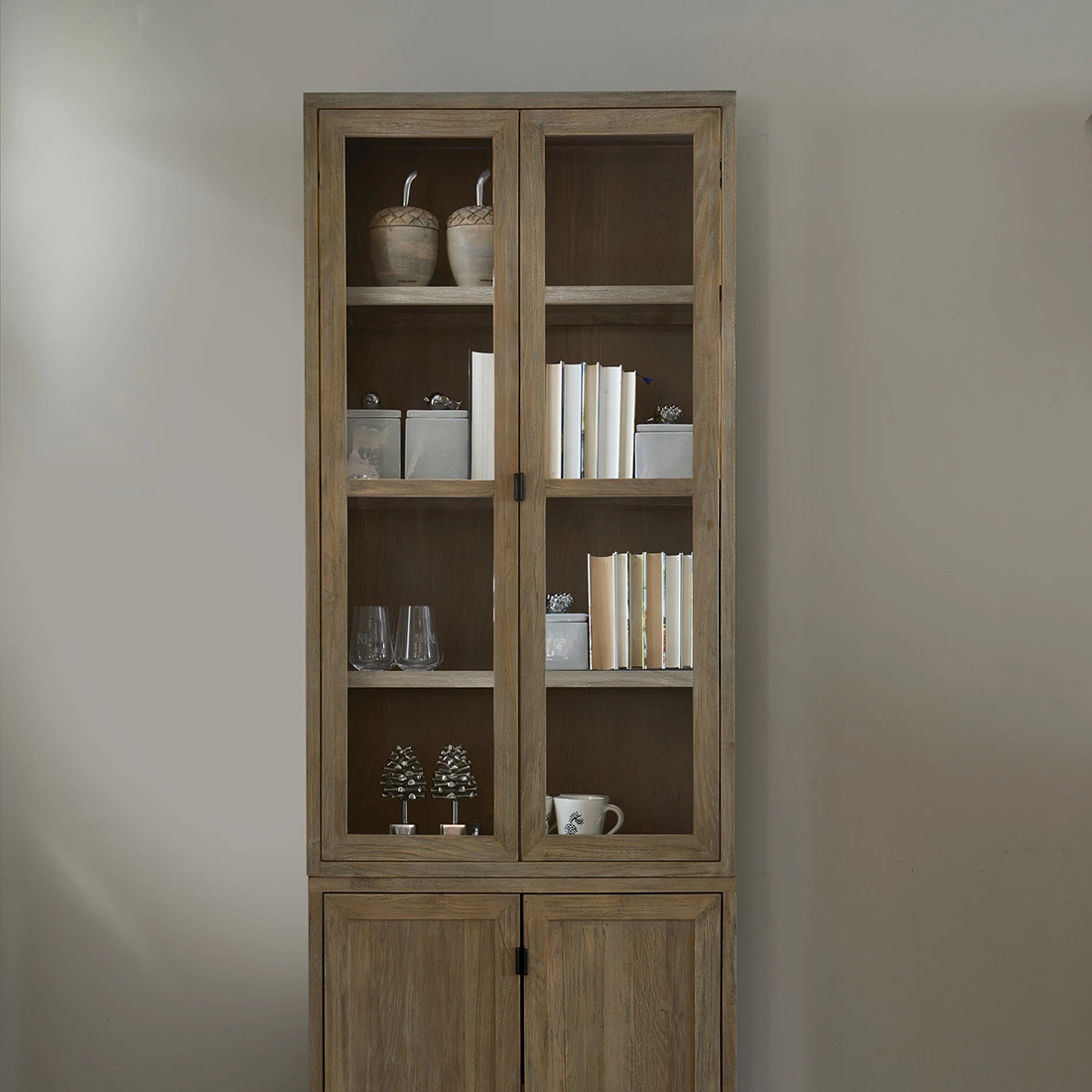 Prezentujemy szafkę bufetową Del Rey firmy Rivièra Maison z serii modułowych szafek Del Rey, dającej Ci możliwość swobodnego zestawiania według własnych preferencji. Ta elegancka szafka o wymiarach 80x42x145 cm, wyposażona w szklane drzwi, może pełnić funkcję górnej części komody lub samodzielnej komody, oferując przy tym obfitość miejsca do przechowywania. Wykonana z odzyskanego dębu, to nie tylko praktyczny mebel, ale także wyraz ekologicznego podejścia do aranżacji wnętrz.