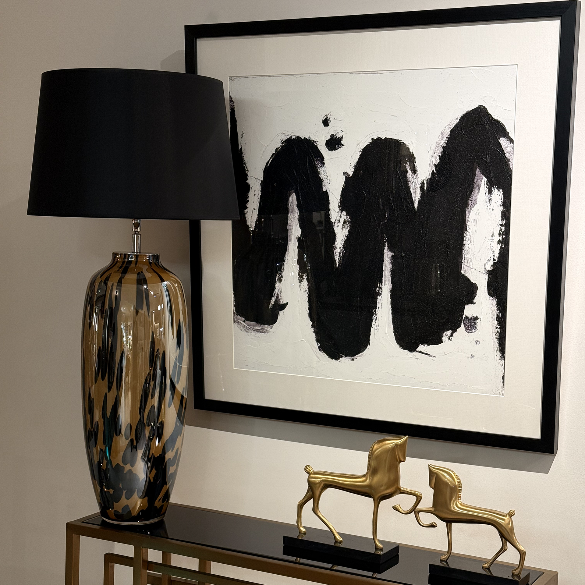 Kontrastowa kompozycja oparta na barwach czerń, biel i szarość sprawia, że obraz prezentuje się nowocześnie, a zarazem ponadczasowo. Wyrazisty motyw został oprawiony w ramę w kolorze czarnym, która dodaje całości głębi i elegancji. Białe passe-partout subtelnie porządkuje kompozycję, a szkło podkreśla estetykę grafiki i chroni powierzchnię przed kurzem. Format 80x80cm daje efekt harmonijnego kwadratu, który świetnie odnajduje się zarówno solo, jak i w większej galerii ściennej.