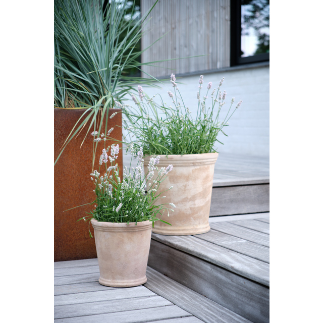 Osłonki zostały wykonane z wysokiej jakości terakoty, co nadaje im autentyczny, rustykalny charakter. Beżowo-brązowe wybarwienie z delikatnie postarzaną fakturą przywołuje klimat śródziemnomorskich ogrodów. Zestaw składa się z dwóch sztuk o różnych rozmiarach – średnica i wysokość to odpowiednio 25 i 35 cm, co pozwala na swobodne zestawianie ich ze sobą lub ustawianie w różnych częściach Twojego domu lub ogrodu.