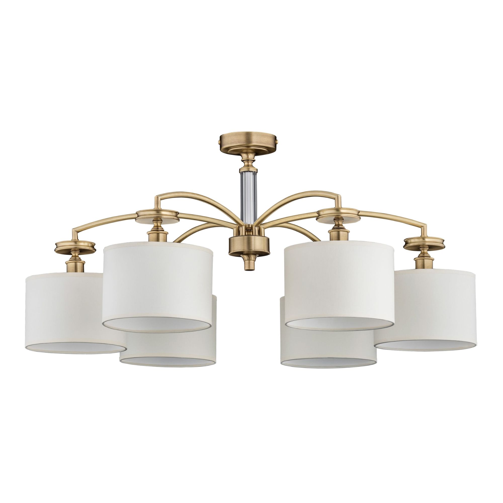 Konstrukcja wyróżnia się rozłożystym układem ramion oraz subtelnym, dekoracyjnym detalem centralnym. Abażury o cylindrycznym kształcie nadają całości lekkości i harmonii. Kolekcja Rossano oferuje różne warianty abażuru, co pozwala dopasować wygląd do indywidualnych potrzeb. Dostępne wykończenia: patyna, złoto błyszczące, złoto matowe, nikiel błyszczący, nikiel matowy.