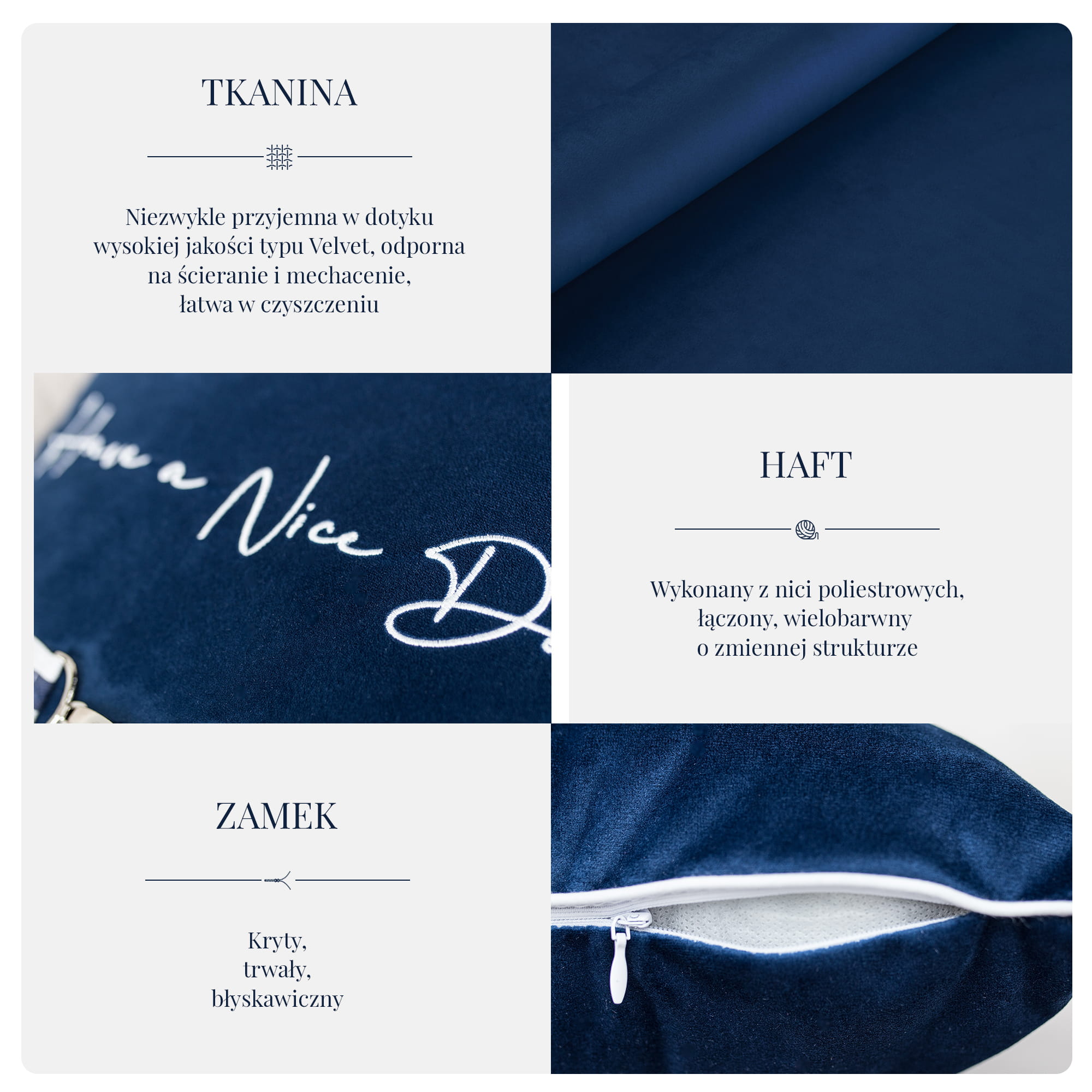 Miękka i aksamitna w dotyku, elegancka poduszka z haftowanym motywem, zapinana na kryty zamek. Poduszka jest w pełni personalizowana, z możliwością wyboru tkaniny, koloru oraz wykończenia. Nasze wyjątkowe i oryginalne poduszki tworzone z pasją do piękna to najwyższa jakość materiałów w połączeniu z różnorodnością kolorów tkanin, które zapewnią niepowtarzalny klimat w każdym wnętrzu.