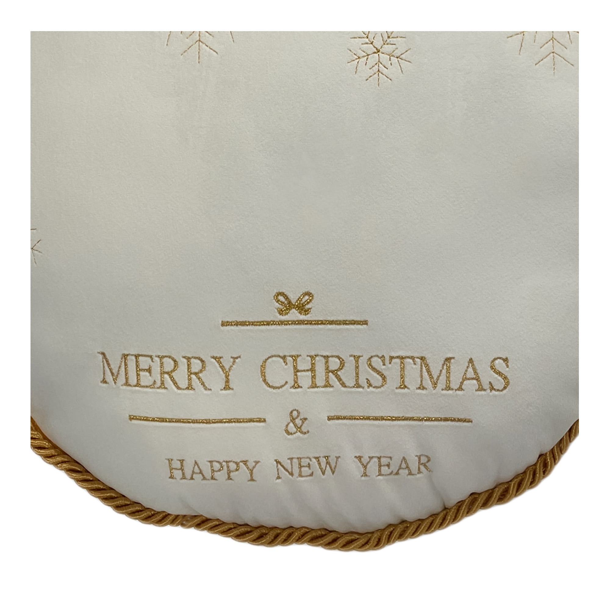 Poduszka na zdjęciu poglądowym wykonana jest w tkaninie Amor 4317 śmietankowa biel, haft i sznur w kolorze złotym