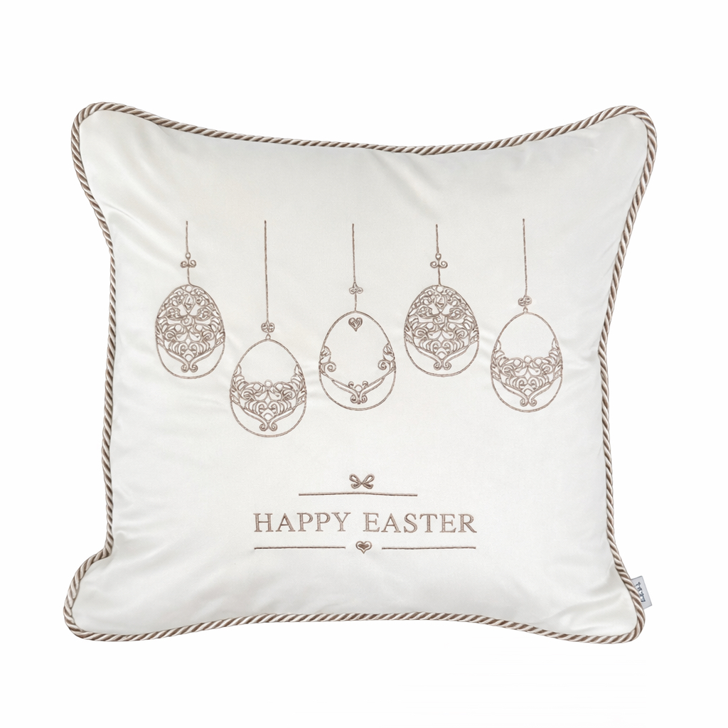 Poduszka haftowana dekoracyjna Eastern Eggs to stylowy dodatek, który wprowadzi do Twojego wnętrza wyjątkowy, wielkanocny klimat. Należy do kategorii tekstyliów dekoracyjnych premium, łącząc estetyczne wzornictwo z jakością wykonania. Haftowane motywy pisanek prezentują się subtelnie i elegancko, tworząc kompozycję idealną na czas świąt.