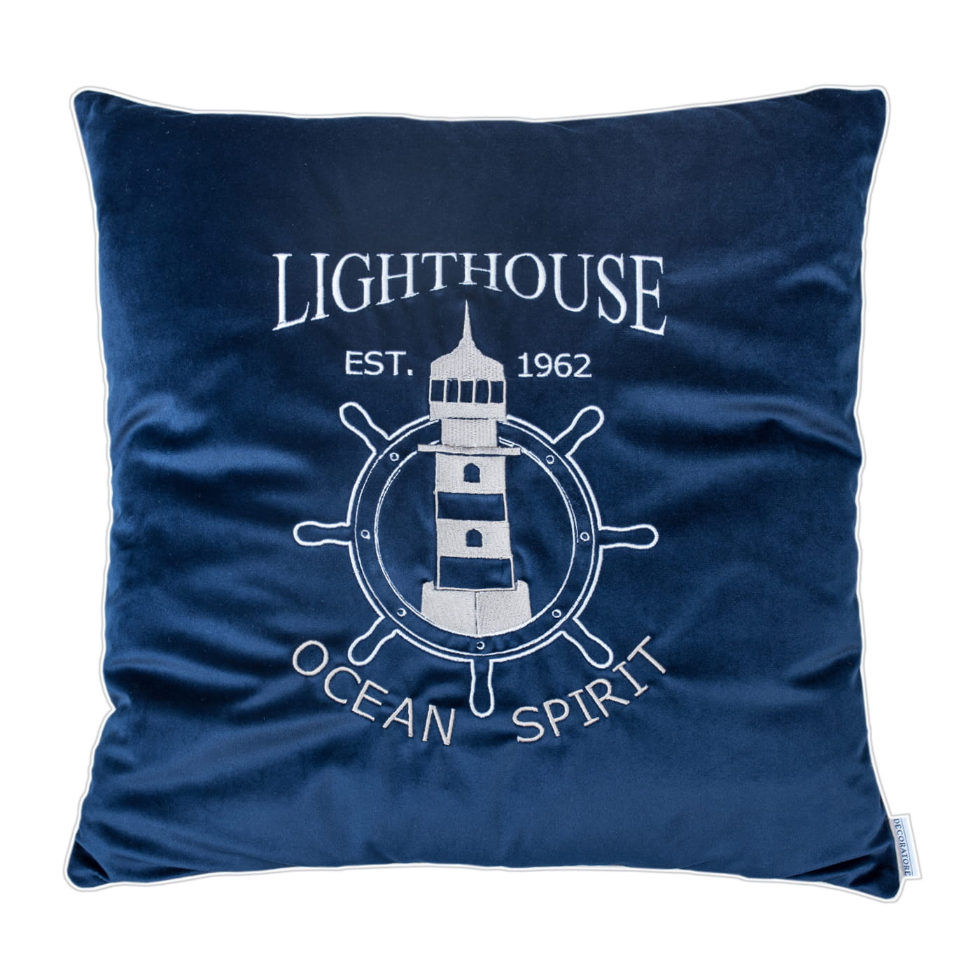 Poduszka Haftowana Dekoracyjna Velvet Latarnia Morska - Różne Kolory Tkanin