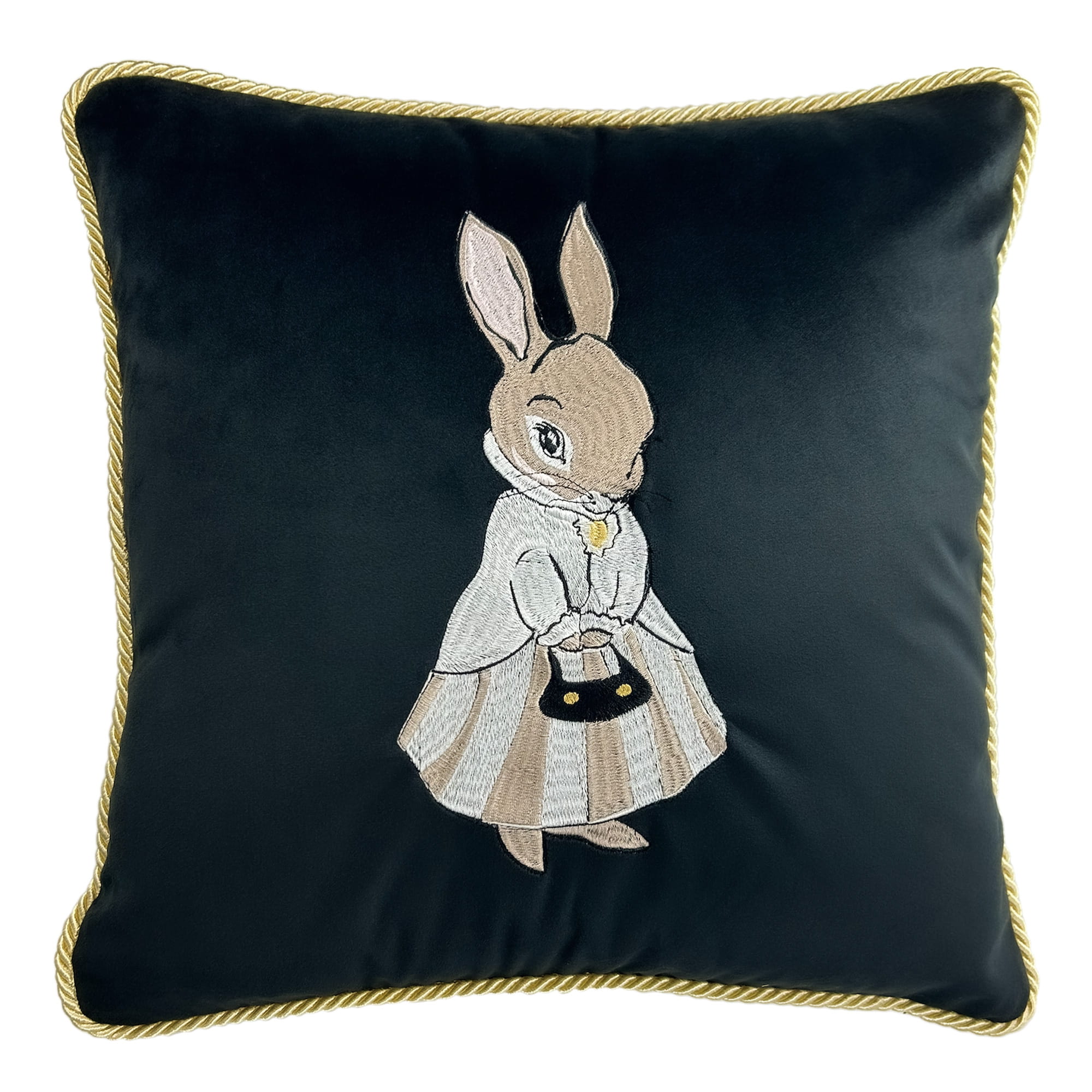 Poduszka Haftowana Dekoracyjna Velvet Zając Girl - Różne Kolory Tkanin