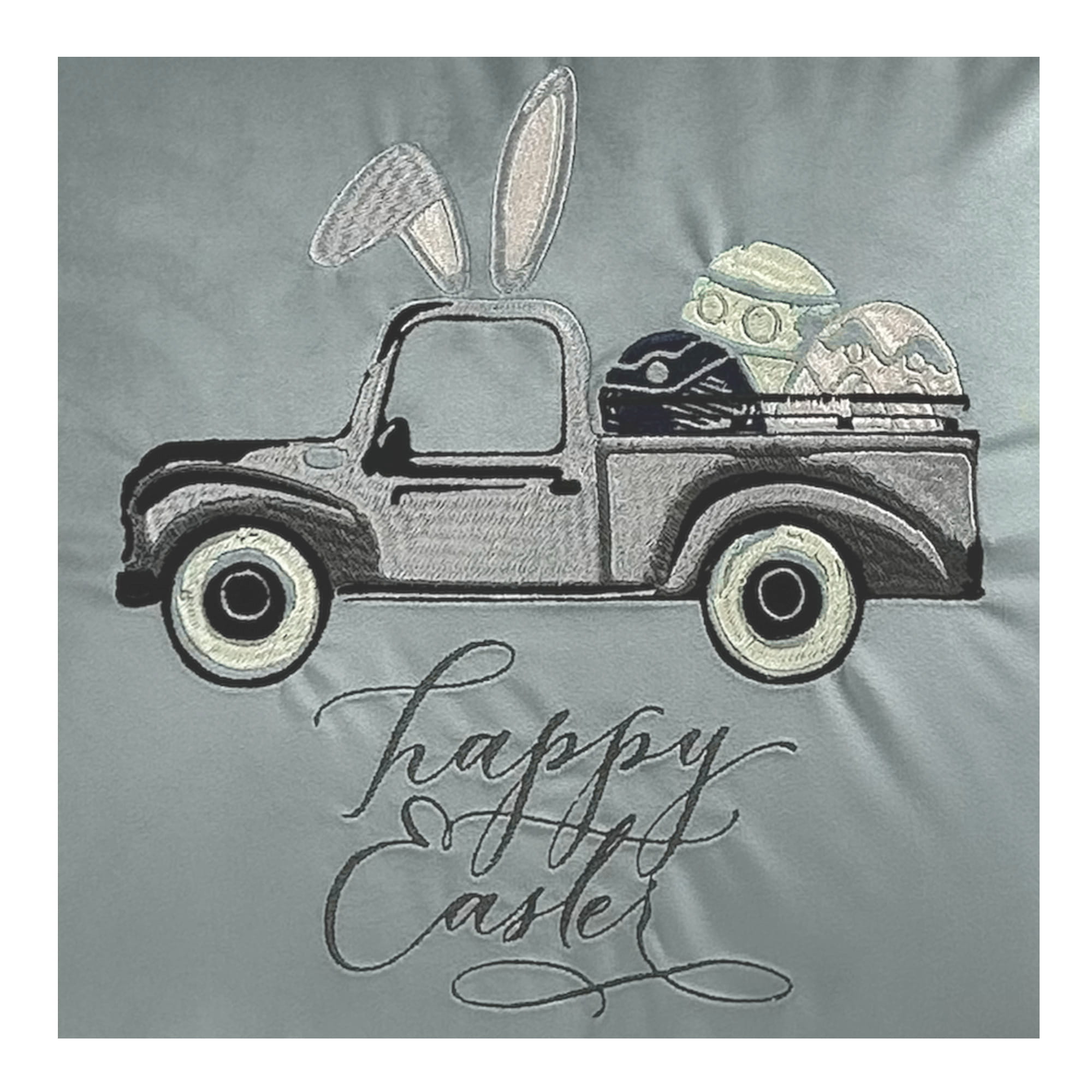Poduszka Haftowana Dekoracyjna Zajączek w Furgonetce - Różne Kolory Tkanin