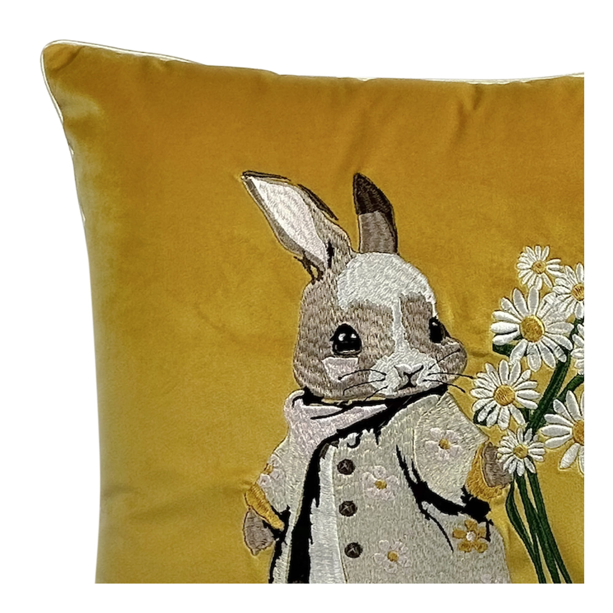 Poduszka Haftowana Dekoracyjna Zajączek ze Stokrotkami - Różne Kolory Tkanin