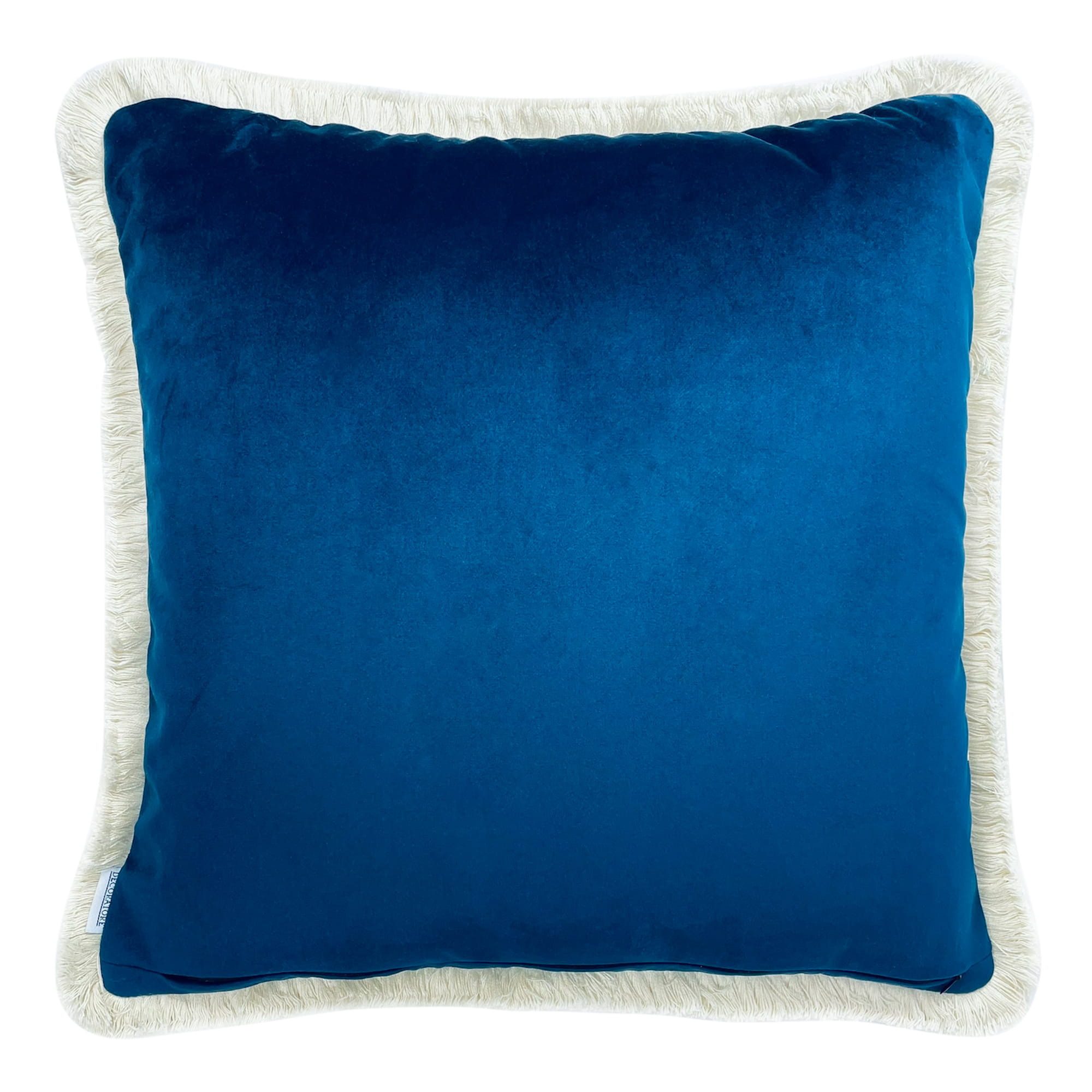 Poduszka prezentowana na zdjęciu poglądowym wykonana jest w tkaninie BluVel Granat Hampton , haft i frędzle w kolorze kremowym.
