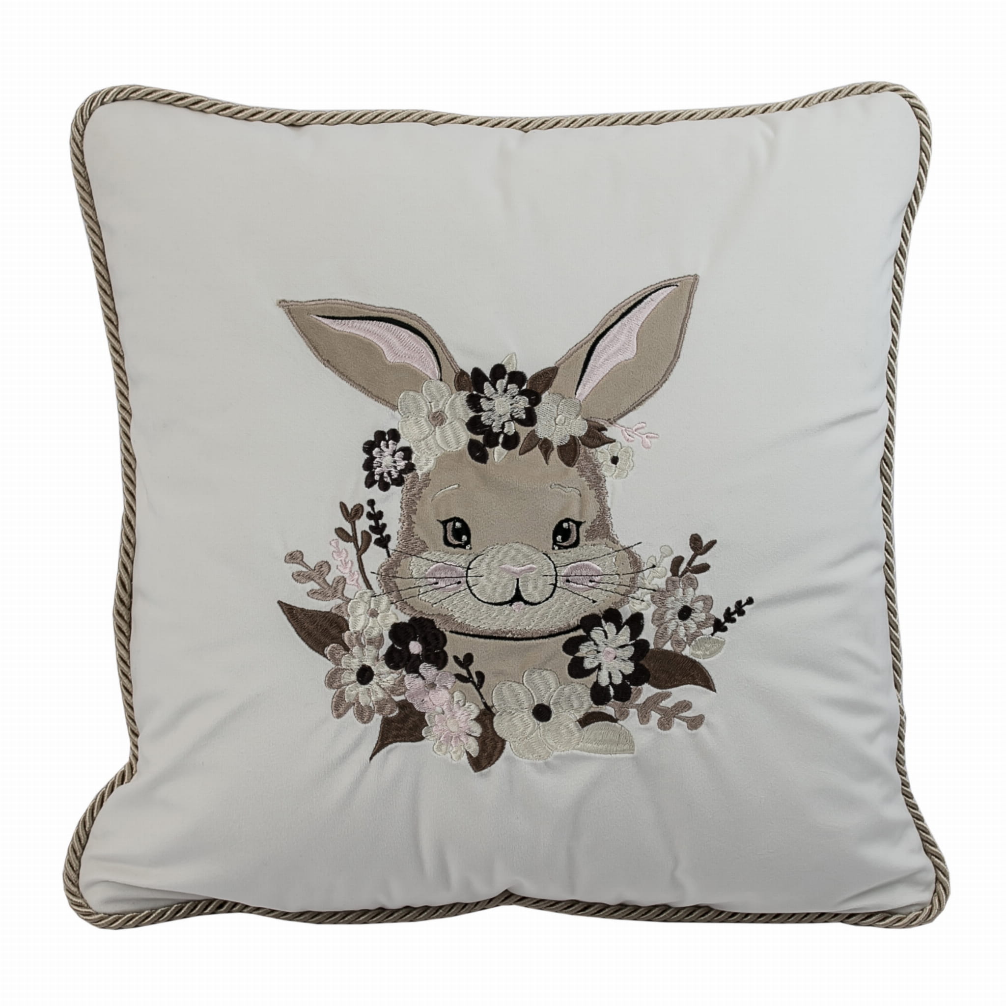 Poduszka haftowana "Zajączek Bloom" – elegancki akcent do Twojego wnętrza