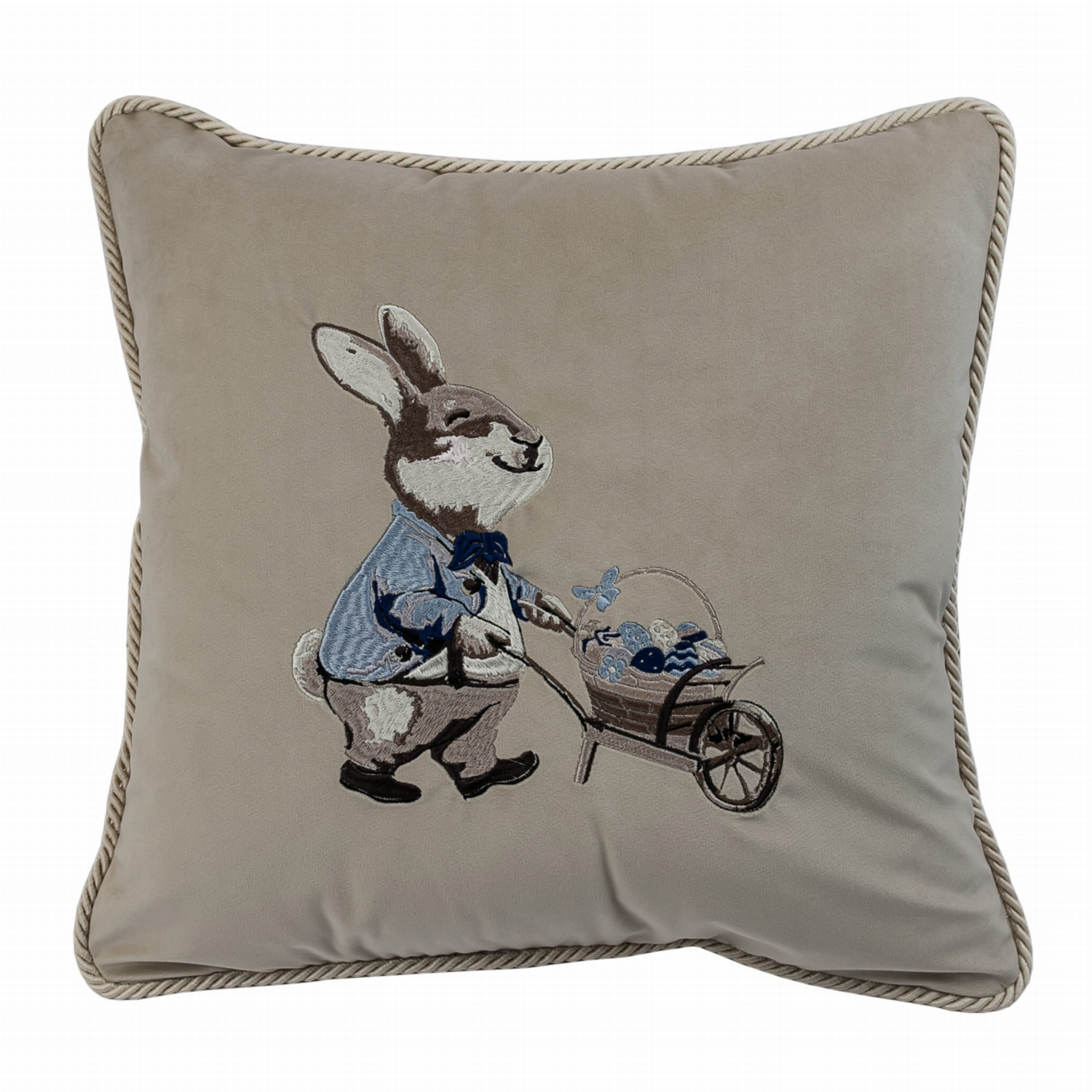 Poduszka haftowana "Zajączek Happy Bunny" – elegancka dekoracja z uroczym akcentem