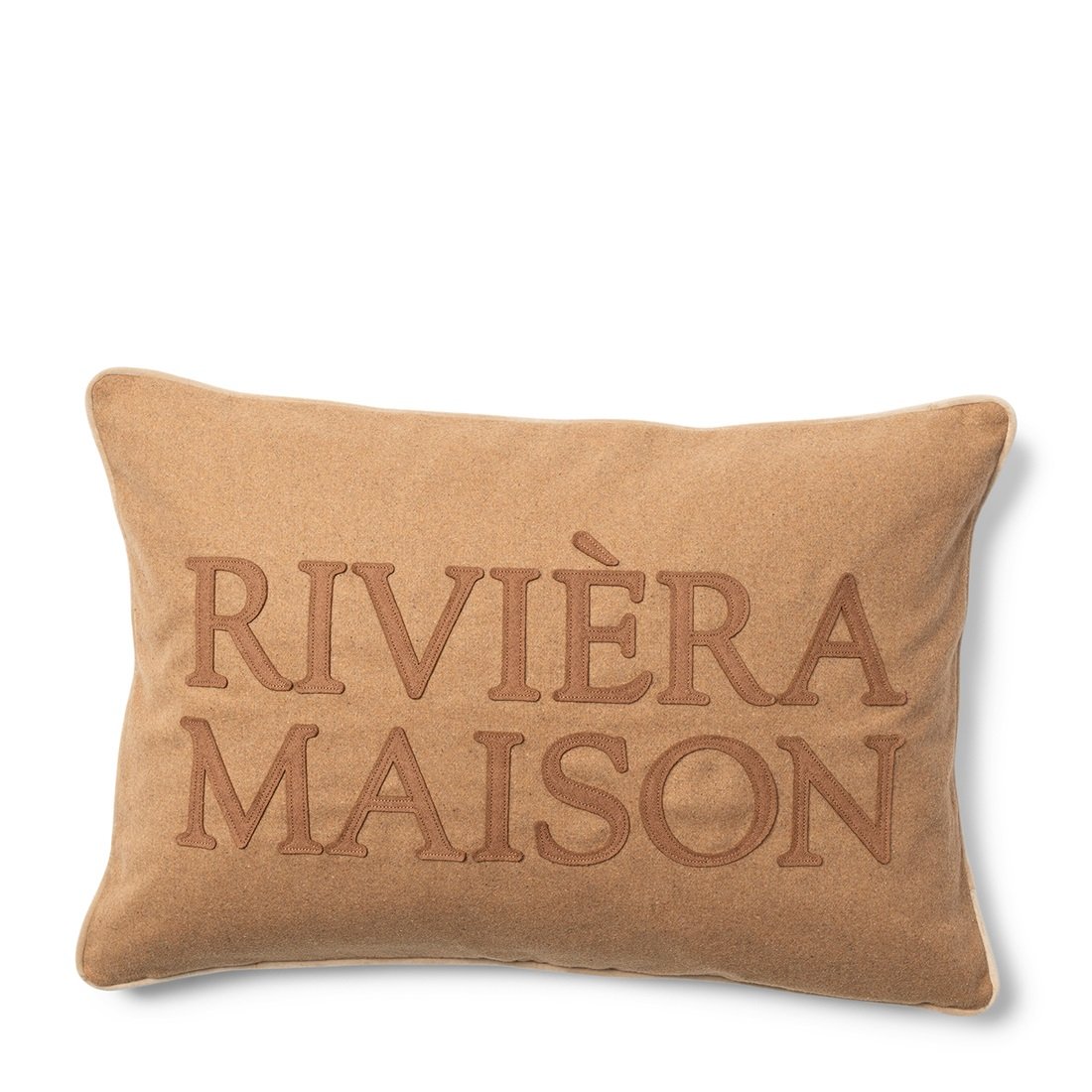 Poszewka została wykonana z miękkiej, welurowej tkaniny w ciepłym karmelowym odcieniu, która przyjemnie otula wzrok i dotyk. Na froncie znajduje się efektowny haft z dużym logo „Riviera Maison”, który dodaje charakteru i podkreśla markową jakość. Tył poszewki utrzymany jest w jednolitej tonacji, co pozwala na łatwą zmianę wyglądu dekoracji w zależności od nastroju lub sezonu.