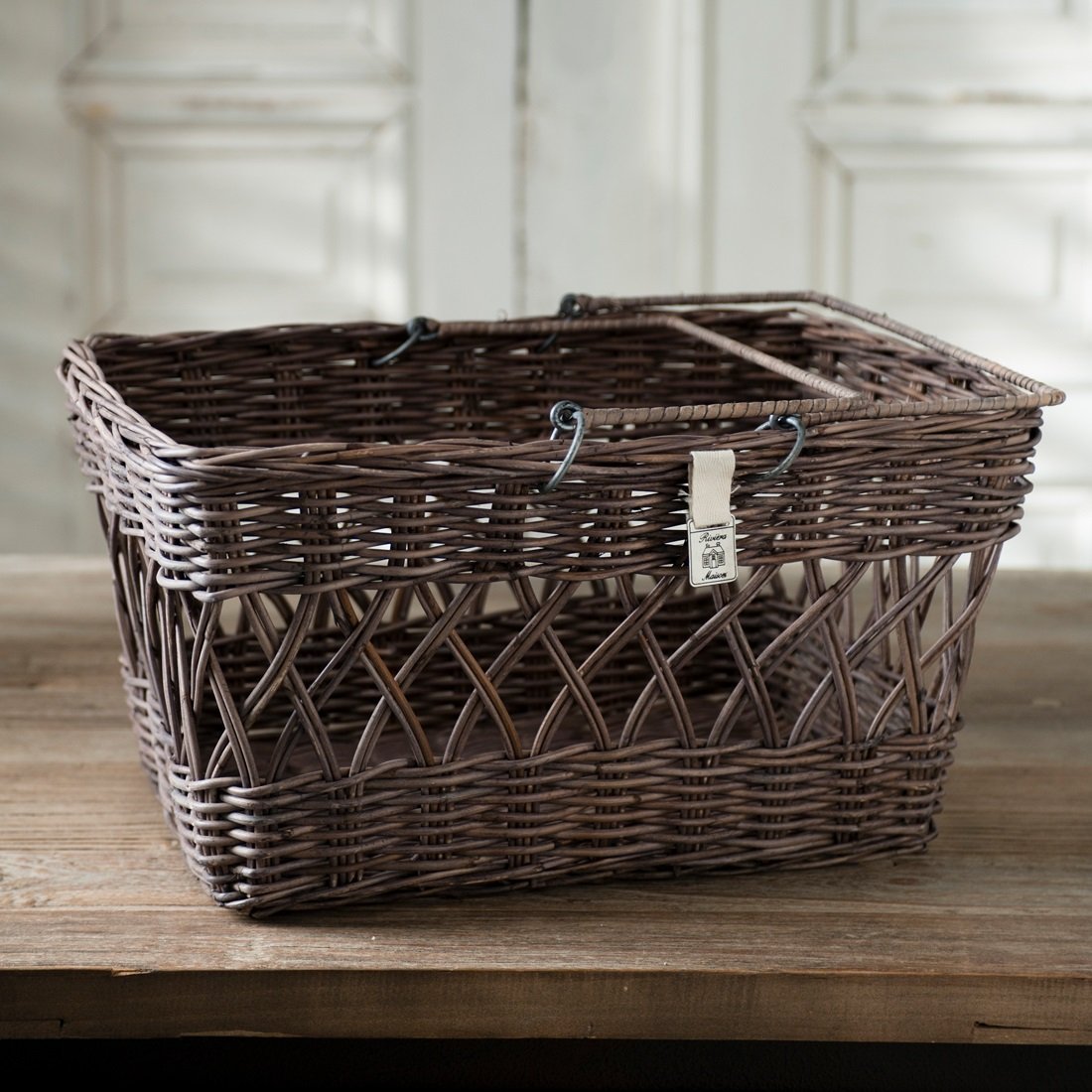 Koszyk wykonany został z naturalnego rattanu, który zachwyca trwałością i lekkością. Ręczne wyplatanie sprawia, że każdy egzemplarz jest niepowtarzalny. Ozdobny, przeplatany wzór nadaje całości wyjątkowego charakteru i przyciąga uwagę. Koszyk dostępny jest w dwóch wersjach kolorystycznych: ciemniejszej czekoladowej i naturalnej jasnobrązowej z czarnym haftem "Maison", co pozwala dopasować go do własnych upodobań i wystroju pomieszczenia.
