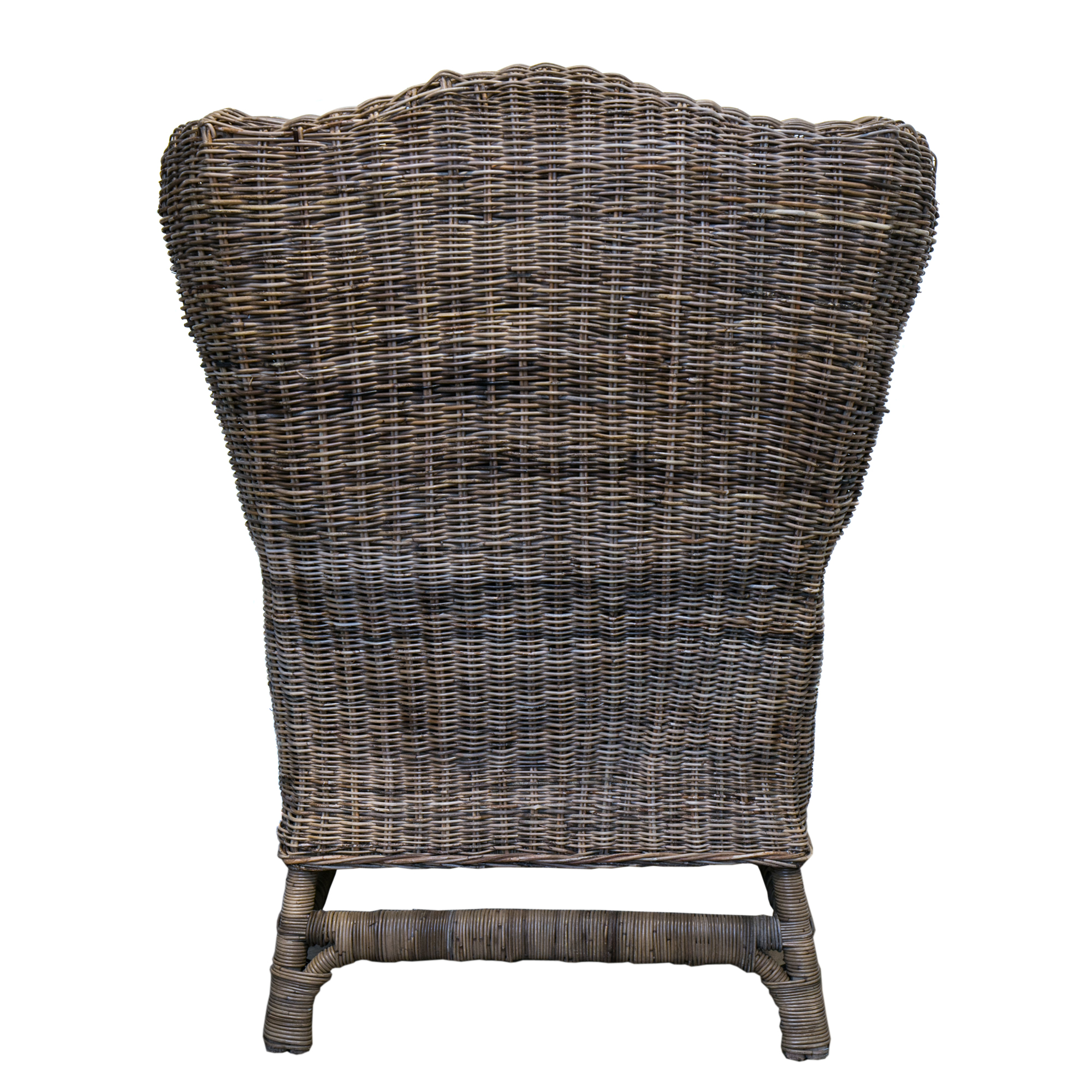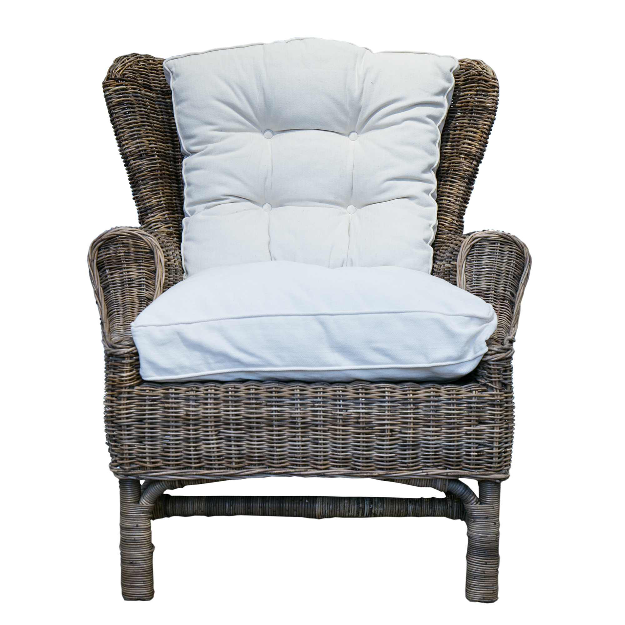 Fotel Liberty został wykonany z naturalnego rattanu, ręcznie wyplatanego w ciasny, równomierny splot. Masywna konstrukcja oraz wysokie oparcie i profilowane podłokietniki zapewniają wygodne podparcie całego ciała. Naturalne wybarwienie w odcieniach brązu z delikatnym przetarciem podkreśla organiczny charakter mebla. Dopełnieniem są miękkie, grube poduszki w kolorze jasnym – zdejmowane i wygodne w czyszczeniu, które podnoszą komfort codziennego użytkowania.