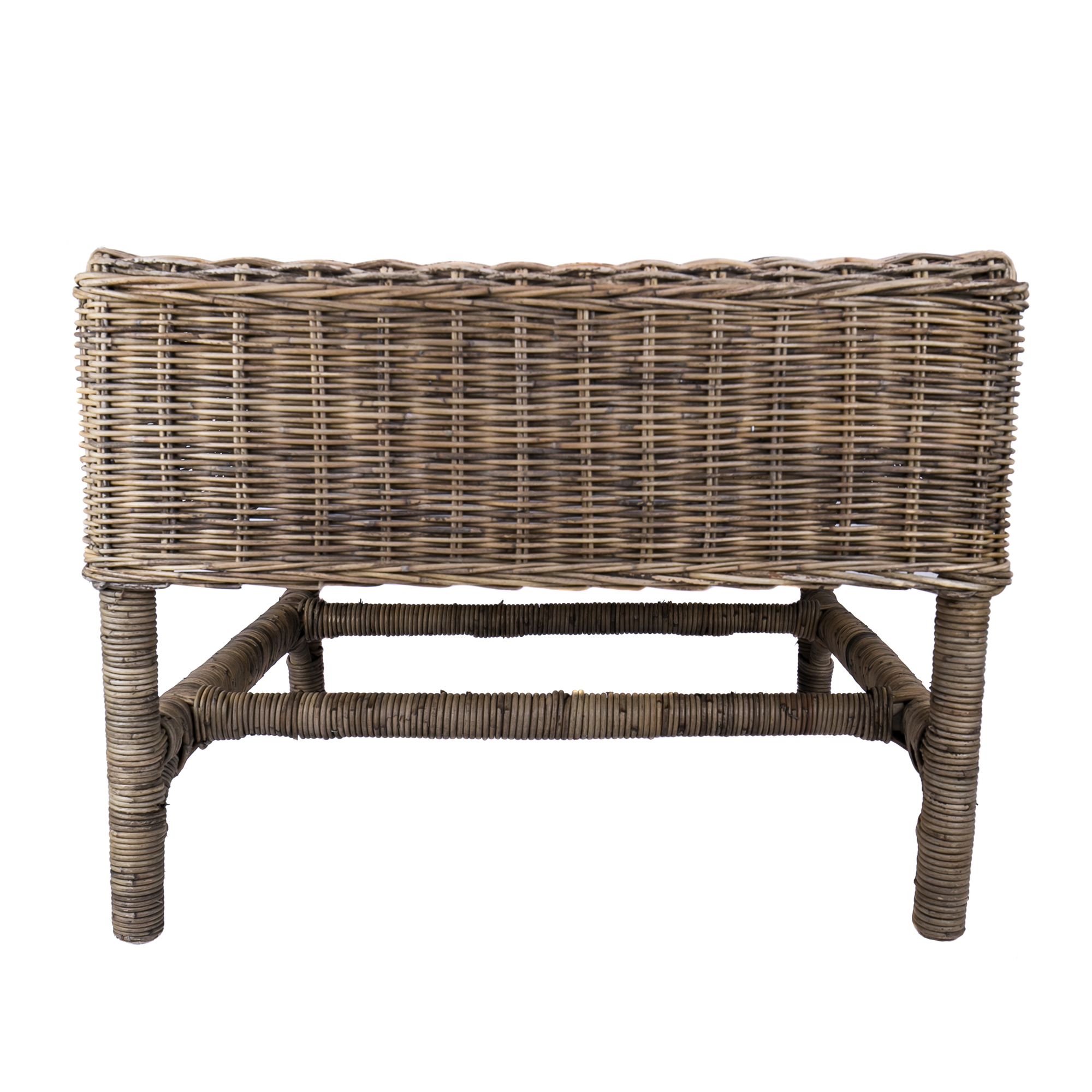 Stolik rattanowy z kolekcji Liberty został wykonany z naturalnego rattanu, dlatego zachwyca autentyczną strukturą, subtelnym wybarwieniem i rękodzielniczym charakterem. Pleciona forma nadaje bryle wyjątkowej lekkości wizualnej, a jednocześnie zapewnia solidne podparcie blatu. Kwadratowy kształt o wymiarach 63x63x48 cm ułatwia ustawienie mebla zarówno w większym salonie, jak i w bardziej kameralnej przestrzeni. Całość doskonale komponuje się z innymi elementami wyposażenia z naturalnych materiałów, szczególnie z fotelem Liberty z naszej oferty.