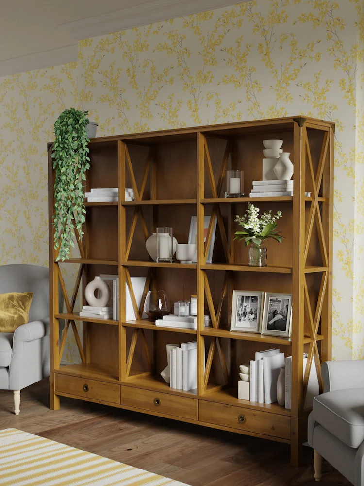 Regał Drewniany na Książki Potrójny Balmoral Laura Ashley Miodowy 191x35x177cm