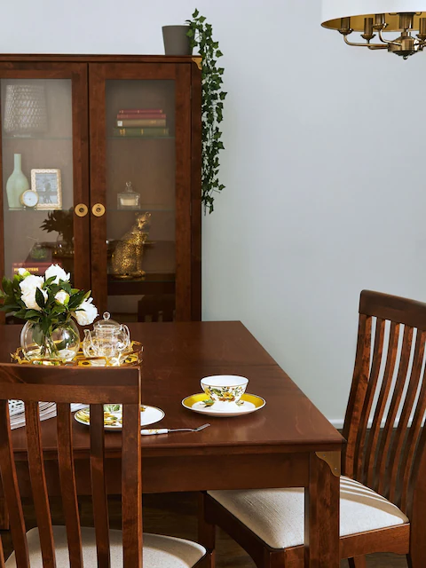 Stół jadalniany rozkładany w odcieniu kasztanowym, o wymiarach 160/210x95x75,5cm, idealnie wpisze się w aranżację wnętrza w stylu kolonialnym czy modern classic. W kolekcji dostępne również krzesła.