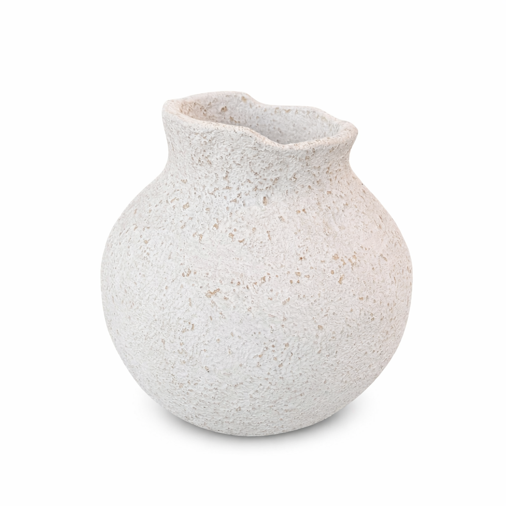 Wazon biało-kremowy znakomicie odnajduje się w aranżacjach boho, japandi, skandynawskich, rustykalnych oraz modern organic. Pięknie komponuje się z drewnem, lnem, ceramiką, szkłem i dodatkami w odcieniach beżu, bieli oraz piasku. W Twoim salonie, sypialni lub jadalni może stać się detalem, który ociepli przestrzeń i nada jej bardziej wysmakowanego charakteru.
