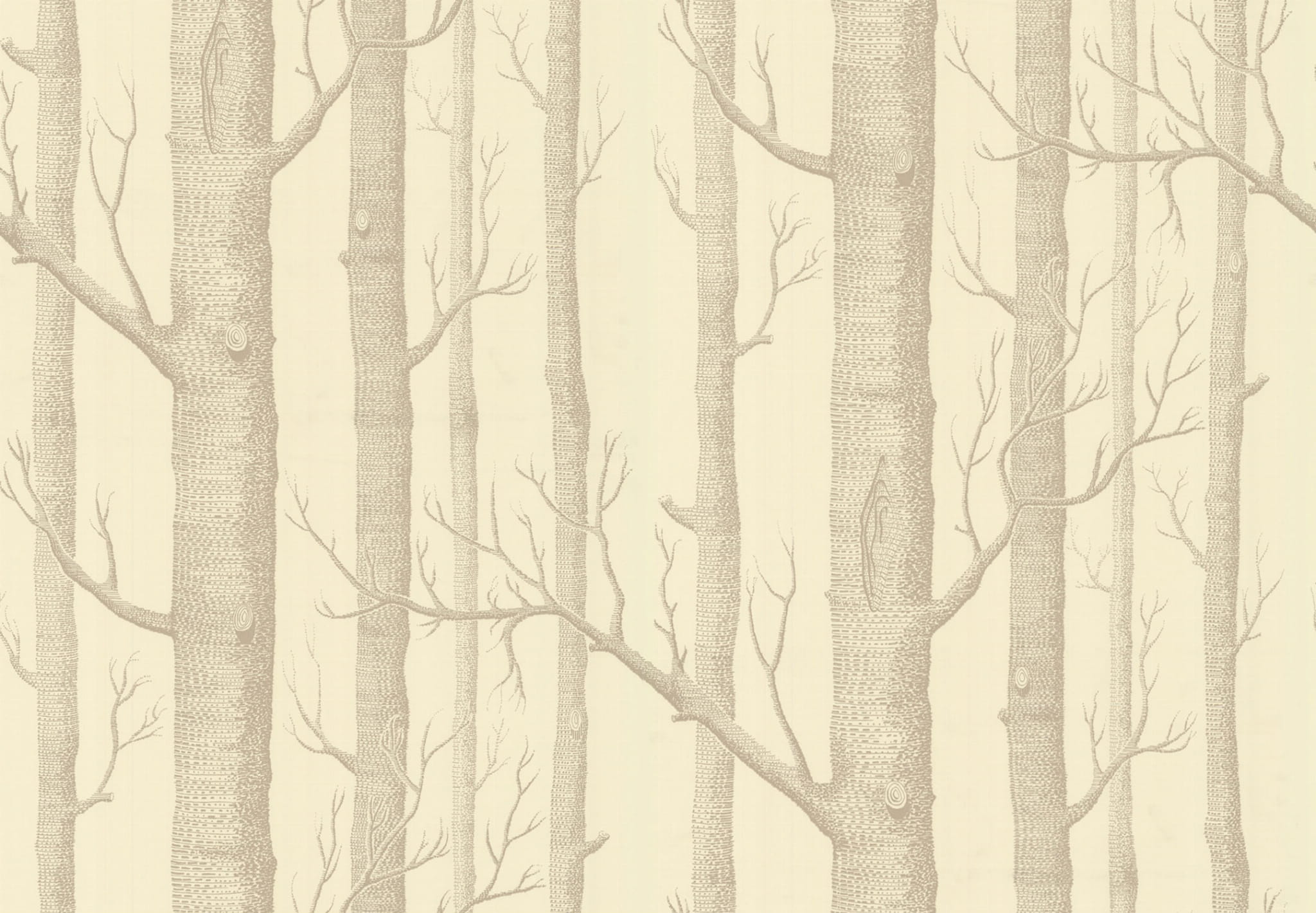 Elegancka spokojna tapeta w efektowny wzór drzew, w beżu i kremie, nadaje się do każdego wnętrza.