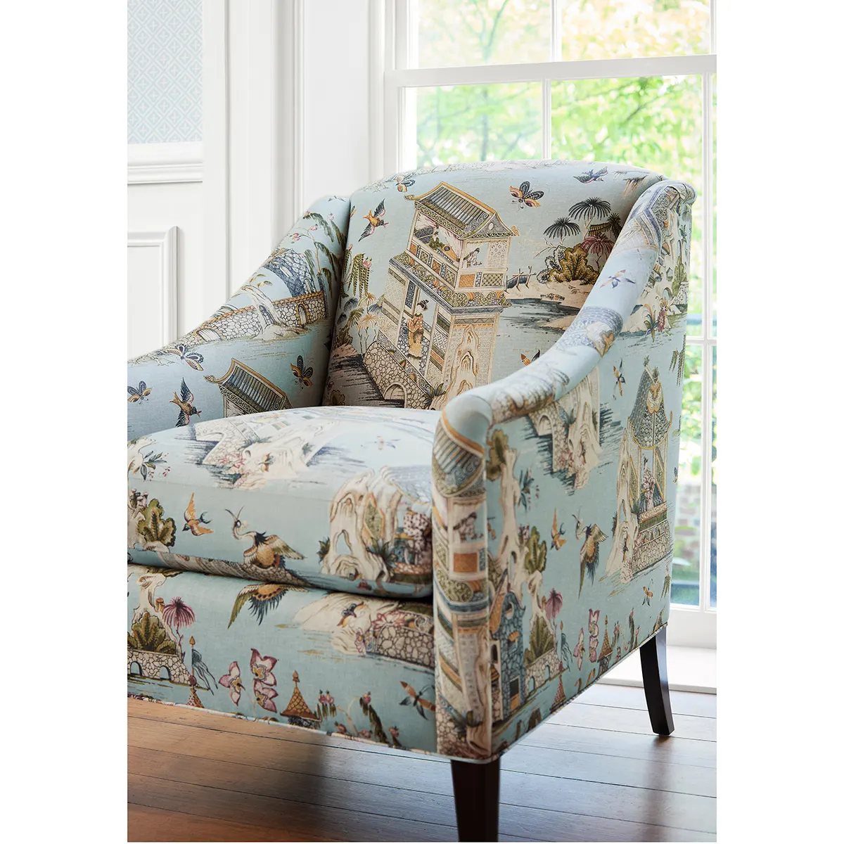 Kolekcja Grand Palace, przywołuje tradycyjną elegancję z wzorami inspirowanymi chinoiserie, stylem stworzonym w Europie z wpływów baśni i podróży na Daleki Wschód. Te tapety z dopasowanymi do siebie nadrukami, tkaninami i haftowanymi tkaninami oferują wyjątkowe zestawienie fantazyjnych wzorów przedstawiających pagody i azjatyckie krajobrazy z geometrycznymi towarzyszami i nieoczekiwanymi kolorami.