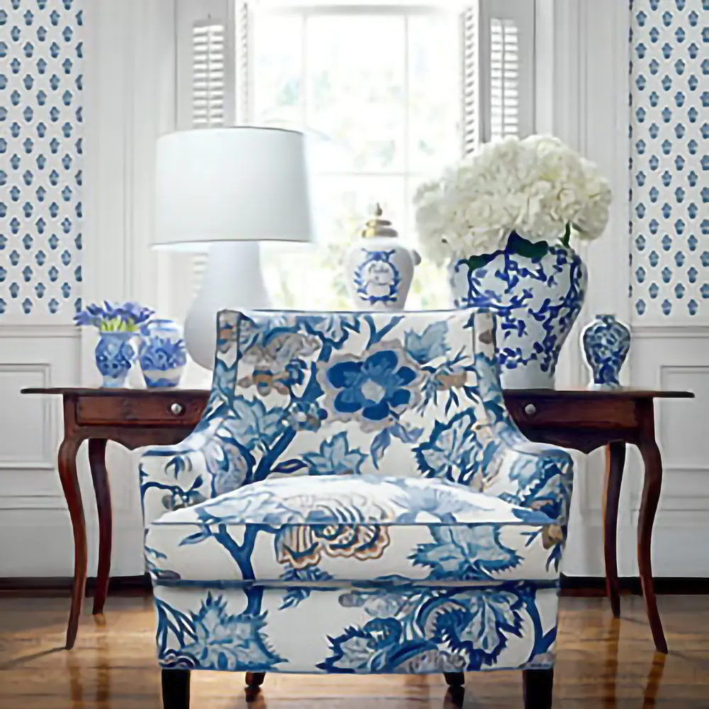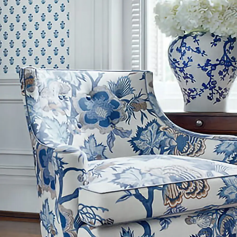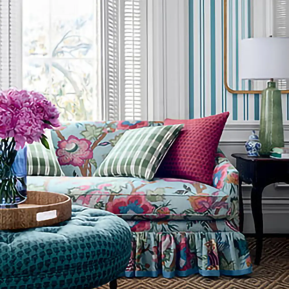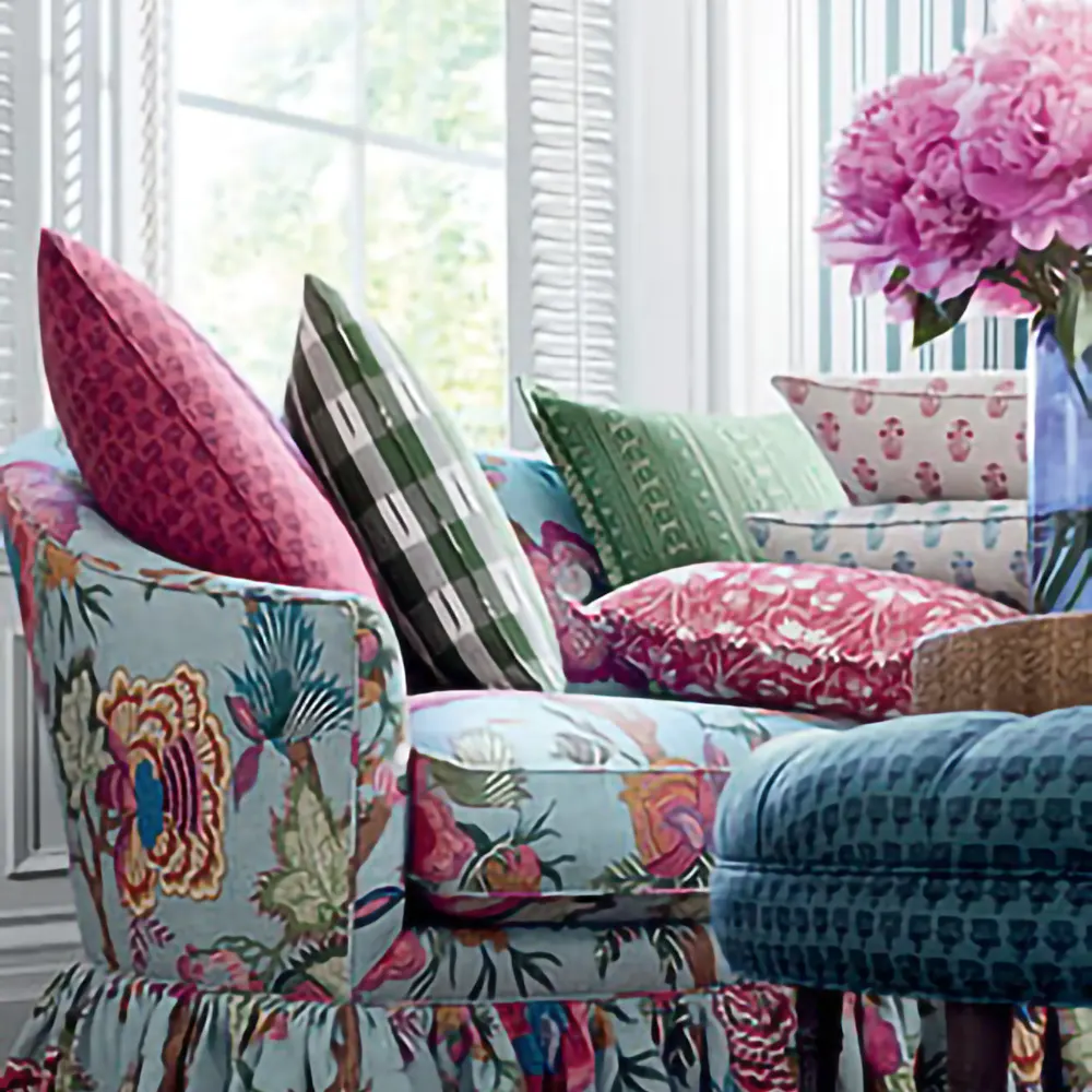 Ten wielkoformatowy, fantazyjny wzór stylizowanych kwiatów został zainspirowany XIX-wieczną tkaniną drukowaną we Francji. Grafiki jakobejskie nawiązują do dominujących na początku XVII w. angielskich wzorów tkanin kwiatowych, z silnymi wpływami indyjskimi.