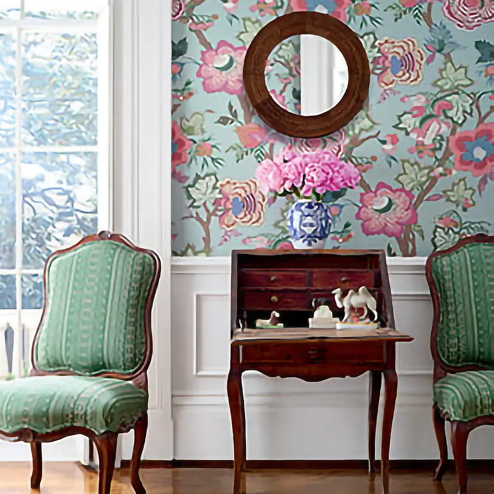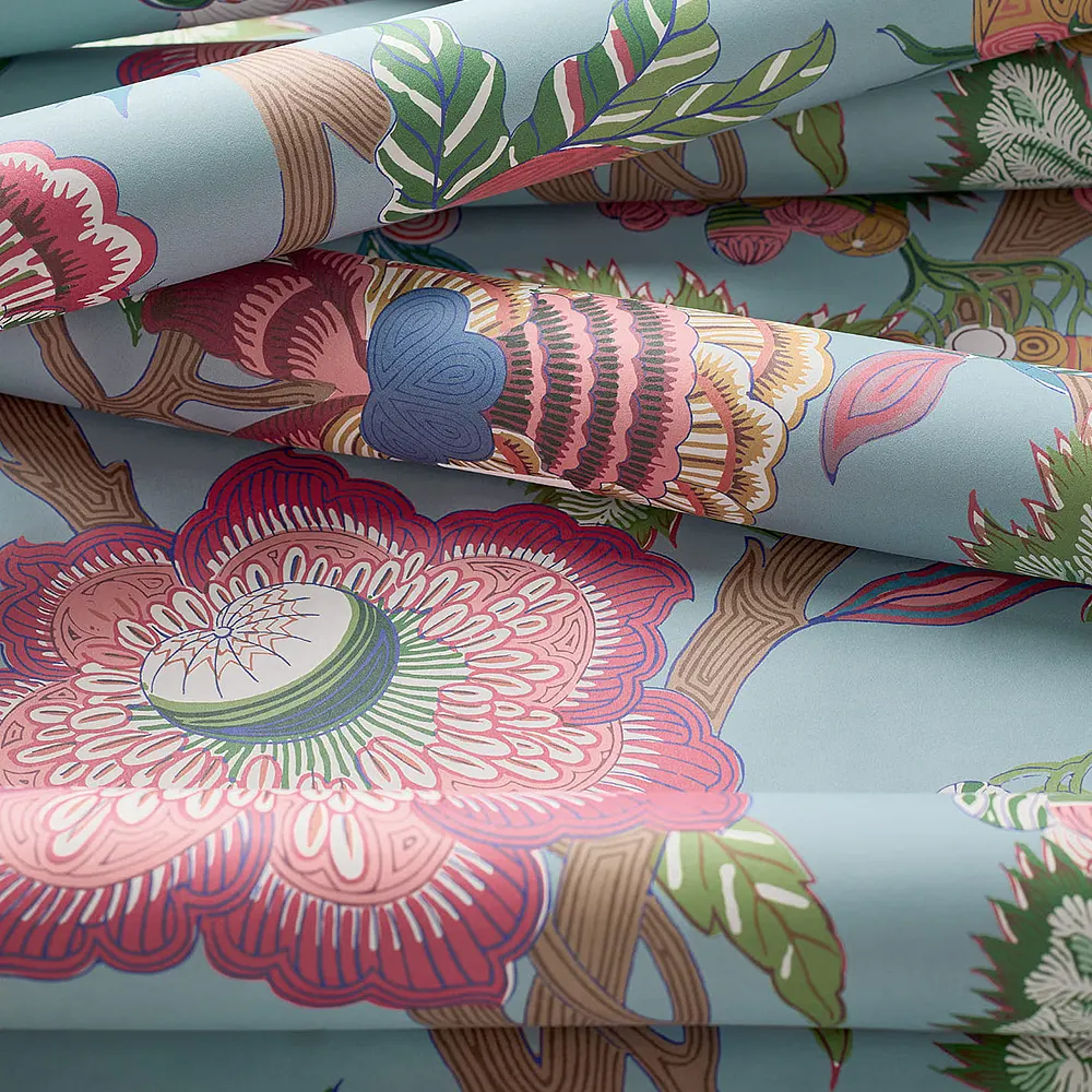 Tapeta Indienne Jacobean Robin's Egg to wzór kwiatowy - kolor jajko Robina. Wzór ten doda uroku każdemu wnętrzu.