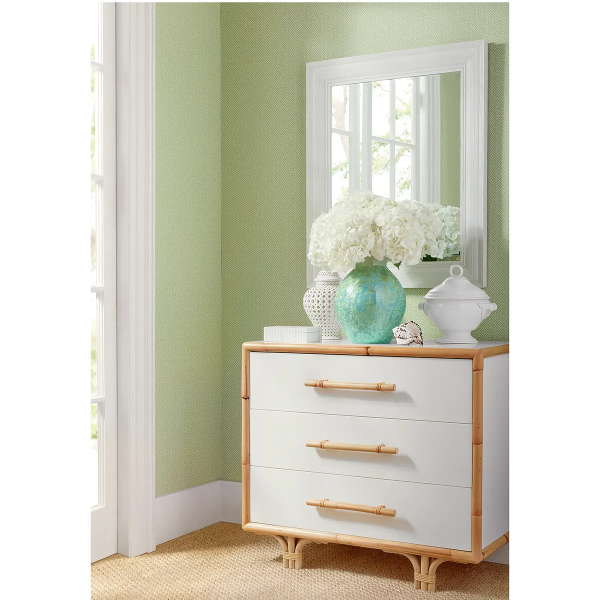 Rimba ma tkany motyw rombu, który wygląda jak drukowany splot papieru. Ten uroczy nadruk w małej skali nadaje wymiar i trwałość przestrzeniom, które tego najbardziej potrzebują. Może być wykorzystana na ścianie centralnej lub jako koordynat z wiklinowymi oraz drewnianymi dodatkami. Modna paleta kolorów od jasnych po ciemne barwy sprawi, że wzory sprawdzą się zarówno w większych jak i mniejszych wnętrzach.